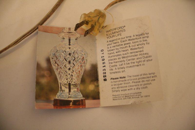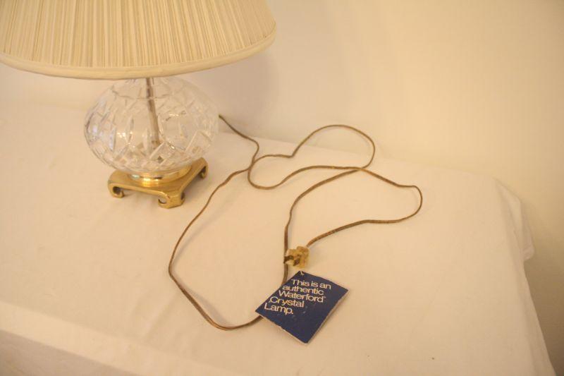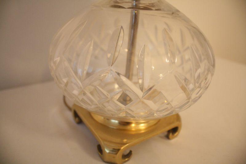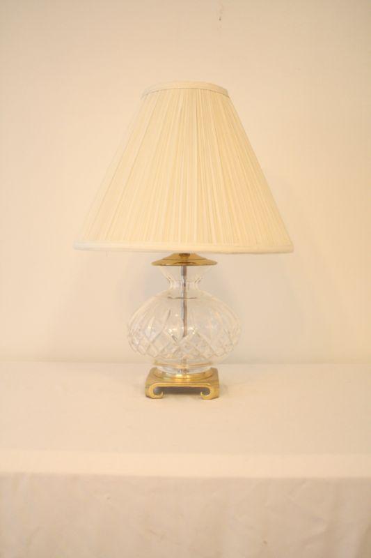 Vintage Handblown Waterford Crystal Small Table Lamp - Small round hand made Waterford Crystal lamp with brass base. Lamp and shade are in great condition and works perfectly. Base measures 7" inches and the height is 20" inches.