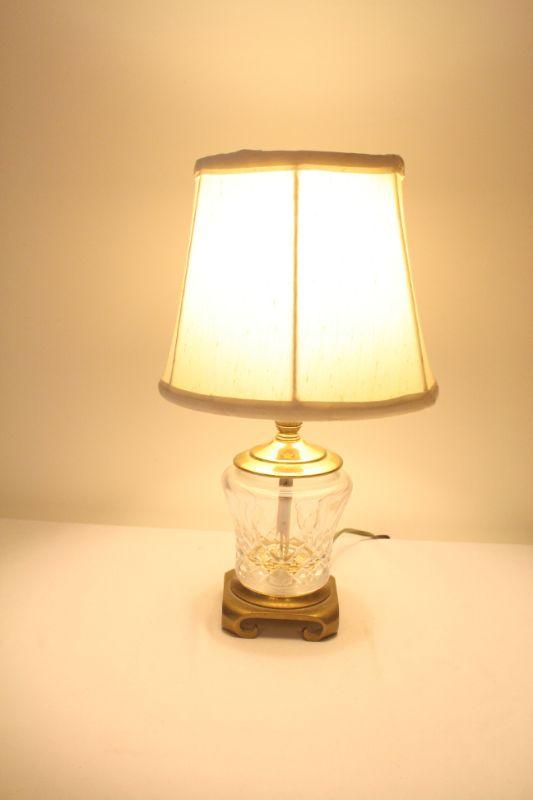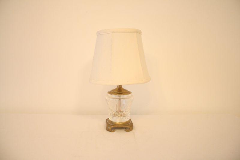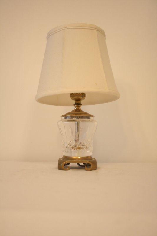 Vintage Handblown Waterford Crystal Miniature Table Lamp - Extra small and adorable Waterford Crystal mini table lamp with brass base. Lamp in good condition, shade has some wear due to age. Base measures 3.5" inches and height is 12" inches.