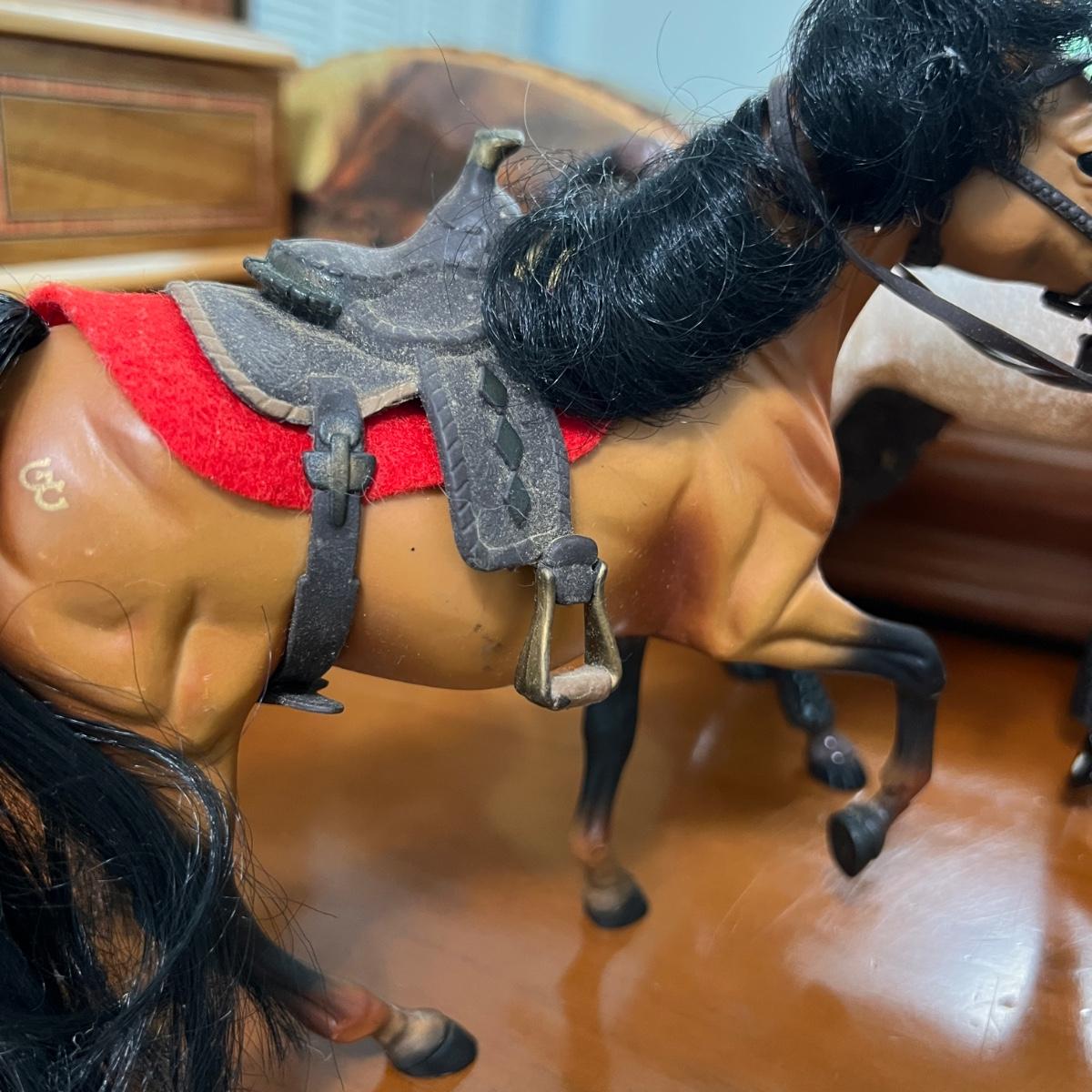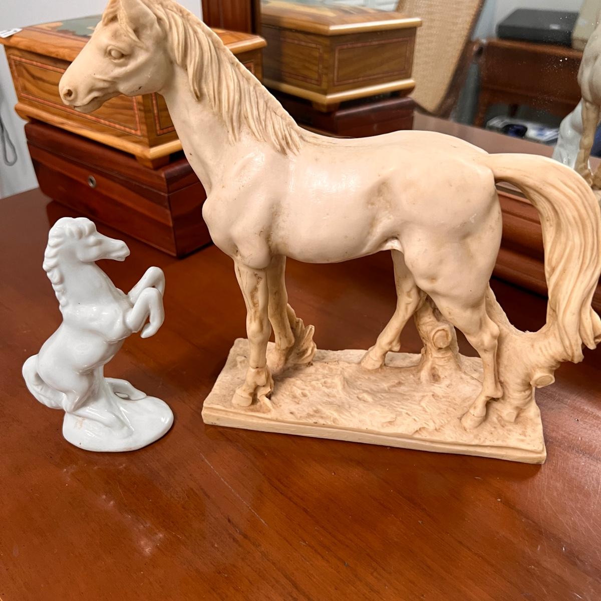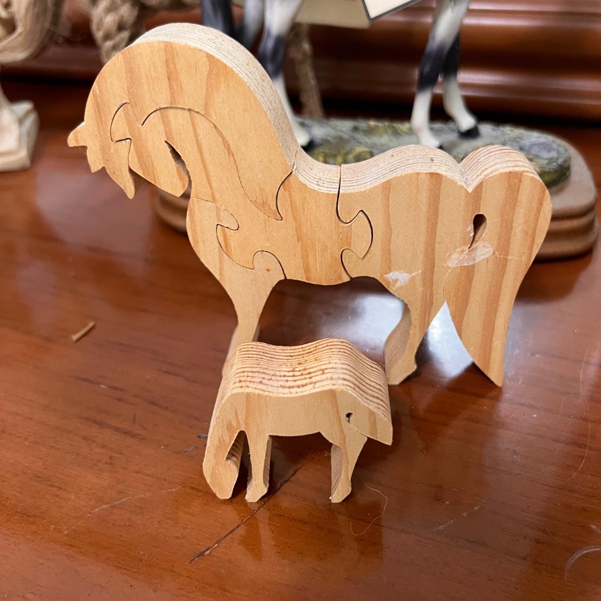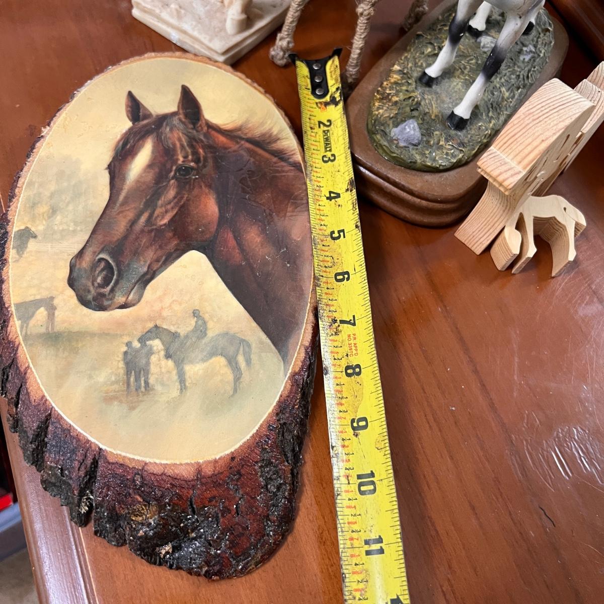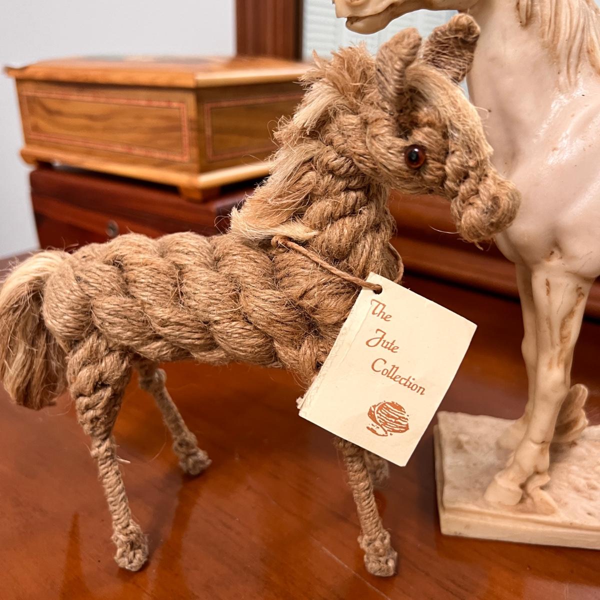 Lot of vintage horses. Toys with some stamped with GC - Empire Grand Champion (plus accessories). New with tags porcelain figurine from Madrid Spain. Hand braided new with tags horse. Wooden horse with foal puzzle. Very interesting collection!