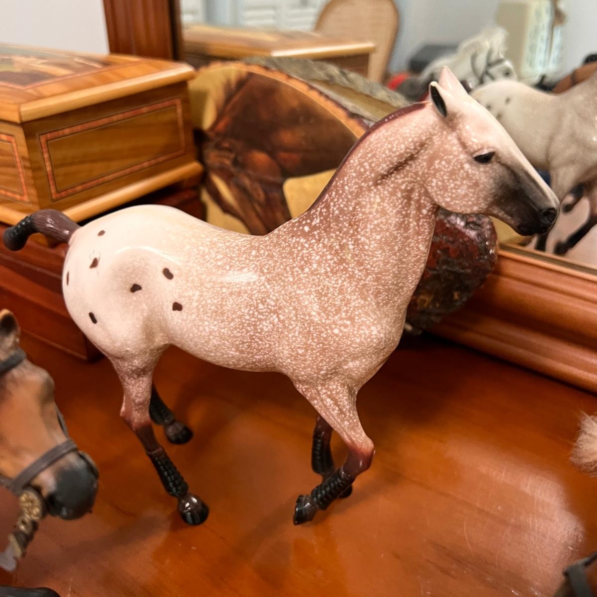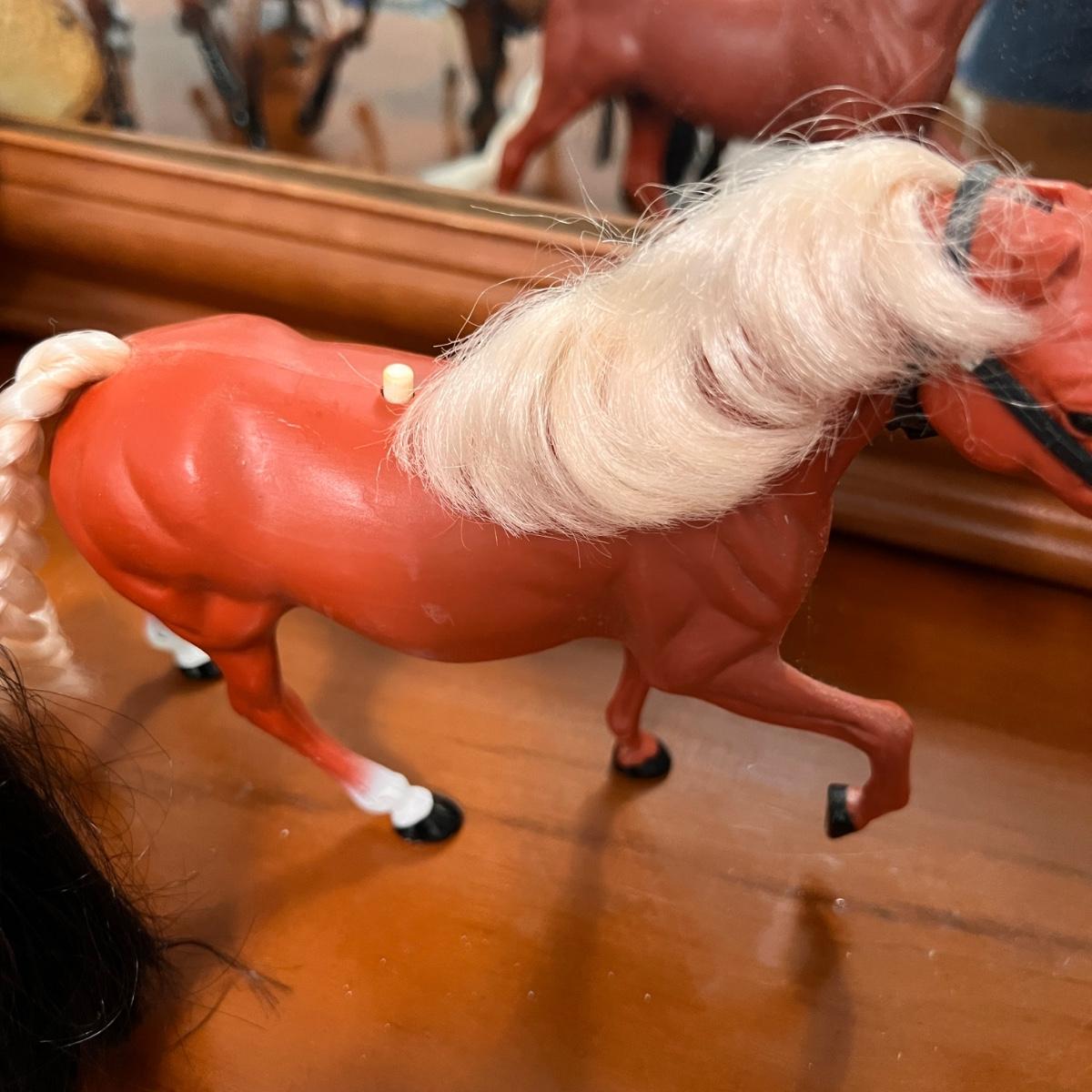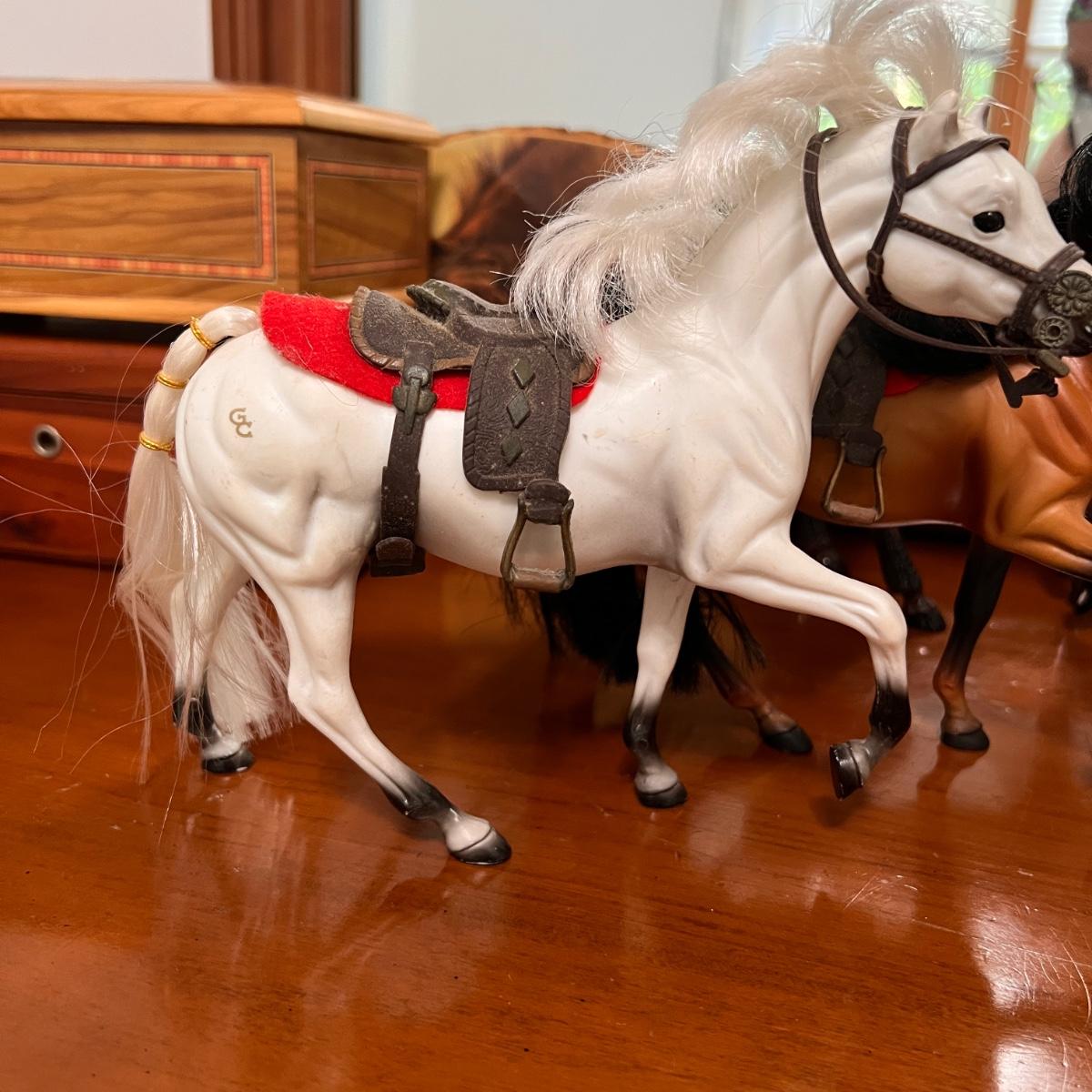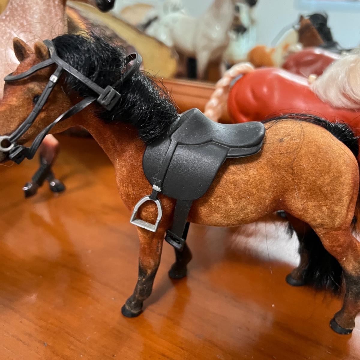 Lot of vintage horses. Toys with some stamped with GC - Empire Grand Champion (plus accessories). New with tags porcelain figurine from Madrid Spain. Hand braided new with tags horse. Wooden horse with foal puzzle. Very interesting collection!