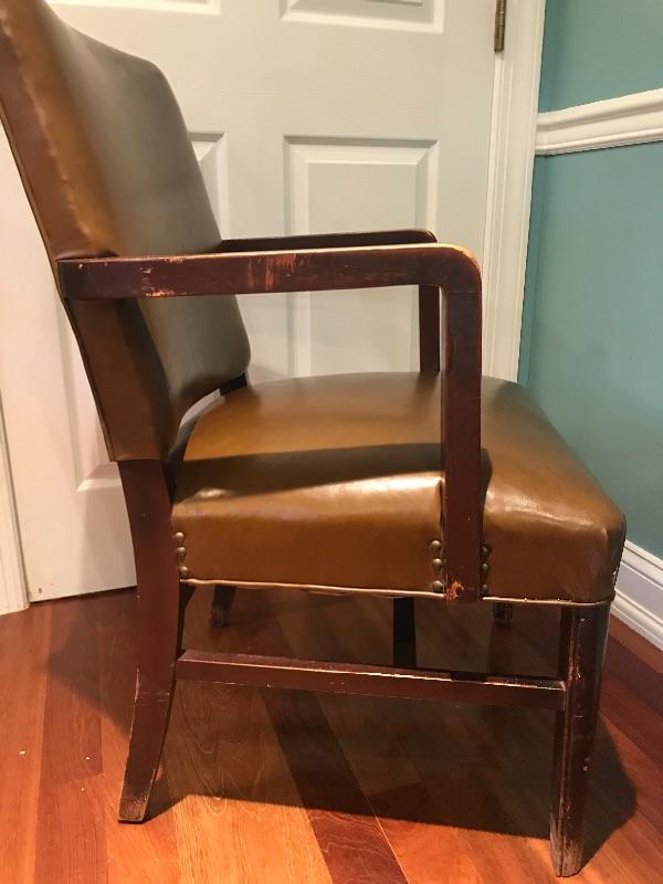 Lots of life left in this leather chair. Please see all pictures for content of the lot, condition of the lot, and measurements if taken. Pictures are the best representation of the items listed and items are untested unless indicated in description. Thank you for looking and have fun bidding!