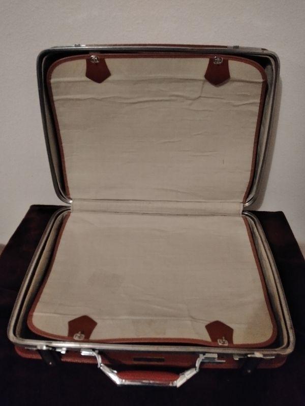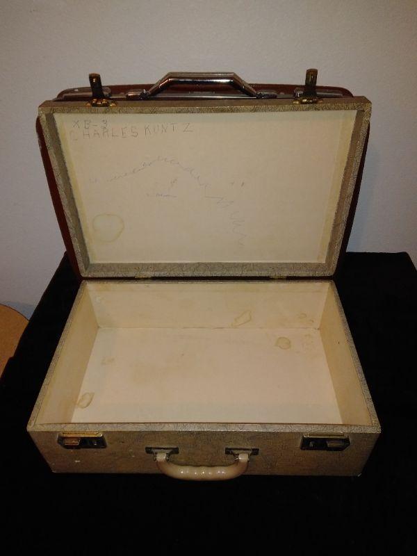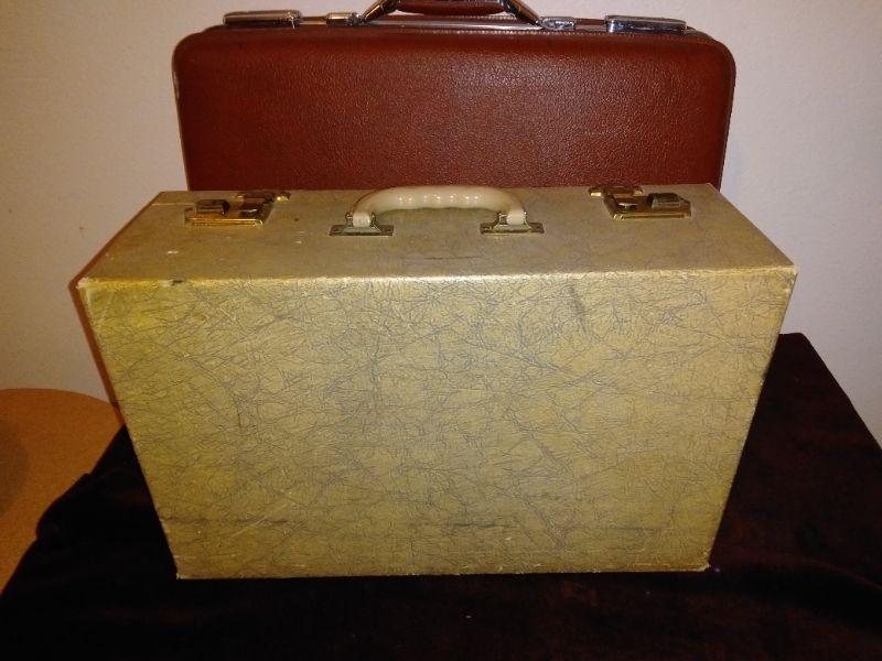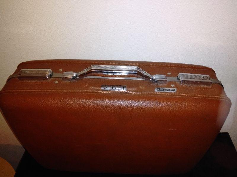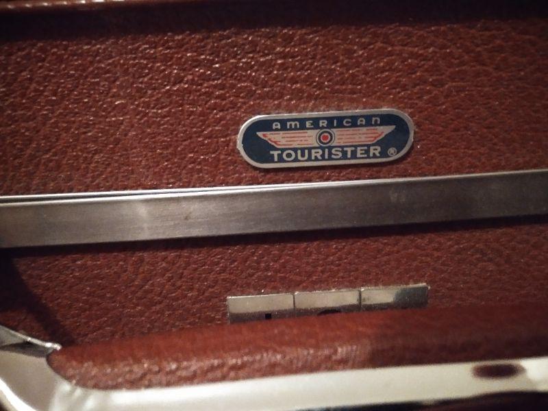 VINTAGE AMERICAN TOURISTER SUITCASE AND WOODEN BOX CASE.