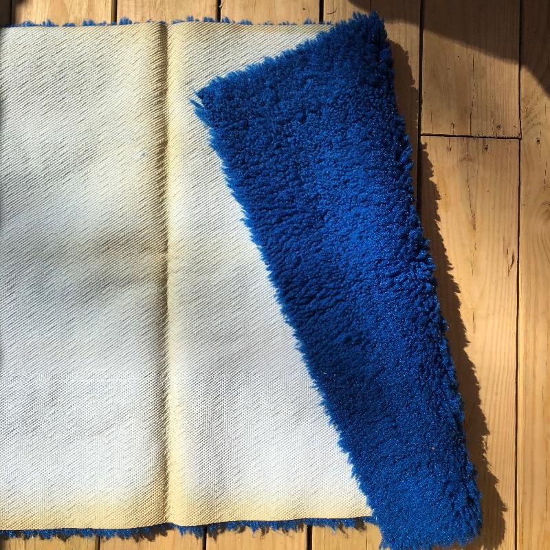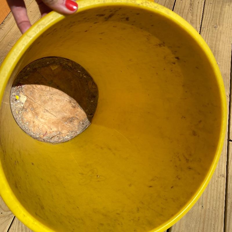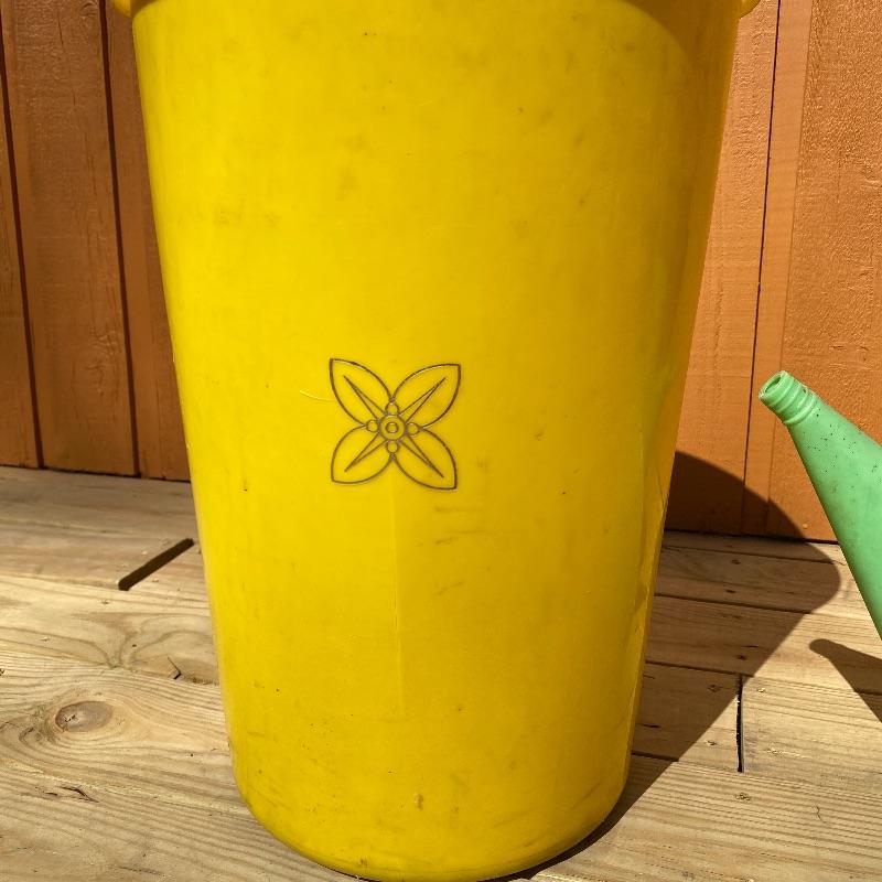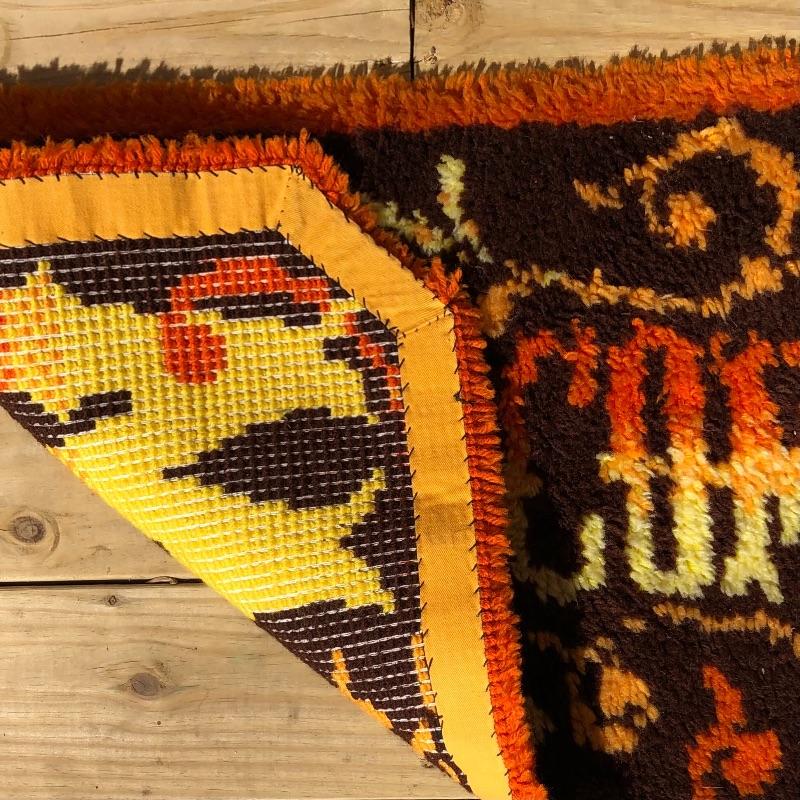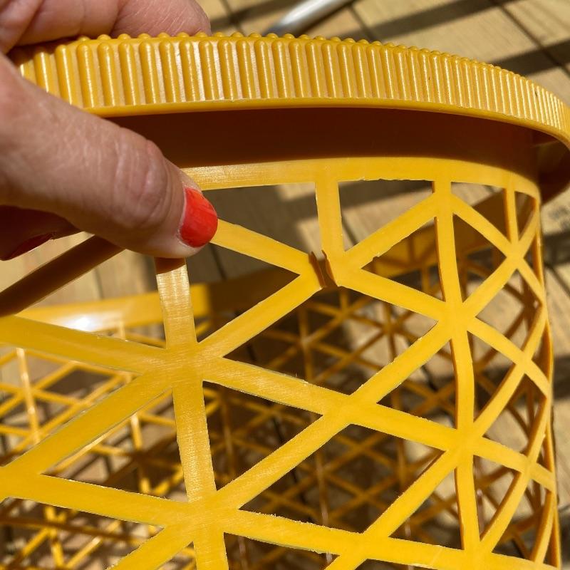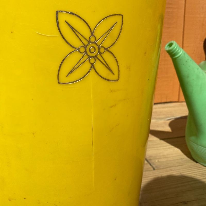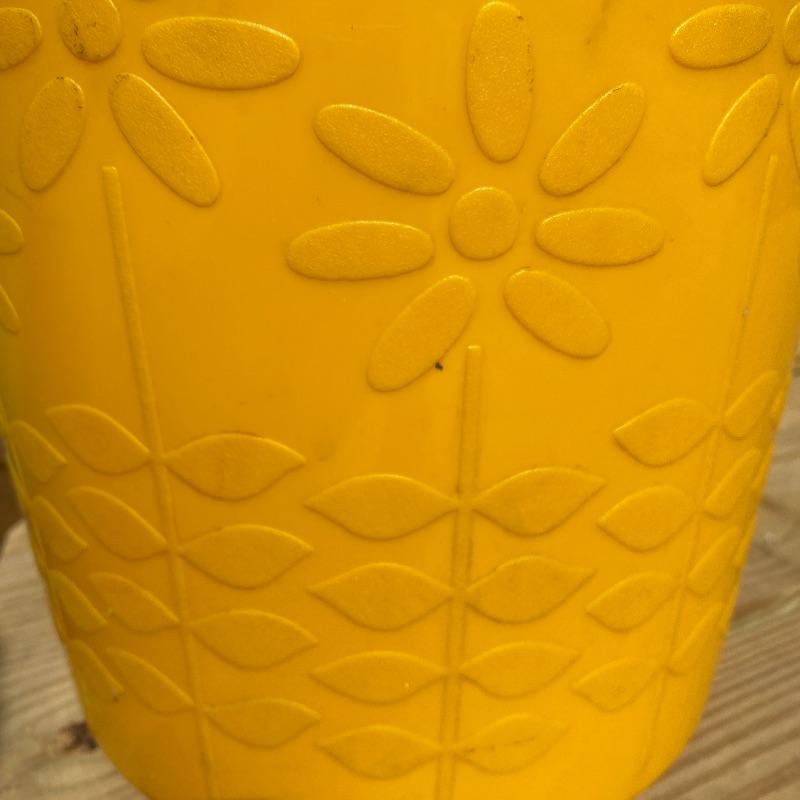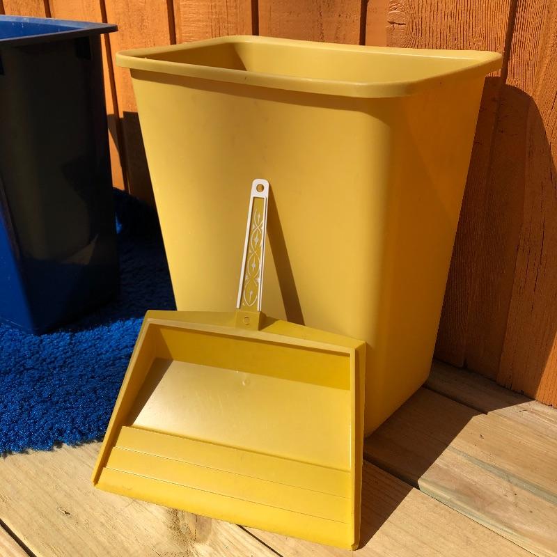 Colorful home essentials to brighten up your laundry. Lot includes floral motif yellow bucket and green watering can which has “2 gal.” written in ink on rim. Large yellow and medium woven laundry baskets. Both have crack (see photos). Two light green trash cans with no floral detail. Also includes a blue trash can and blue bath mat, bath mat has mild yellowing on the back. Lastly, a “Welcome” latch hook rug. No shipping.