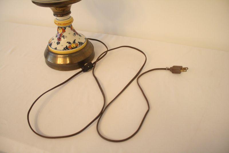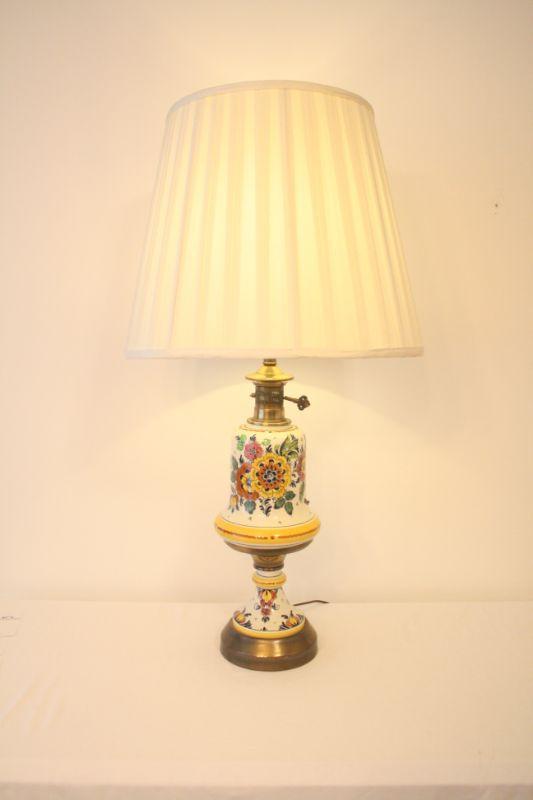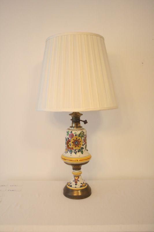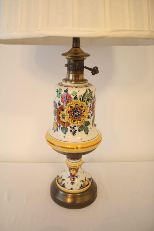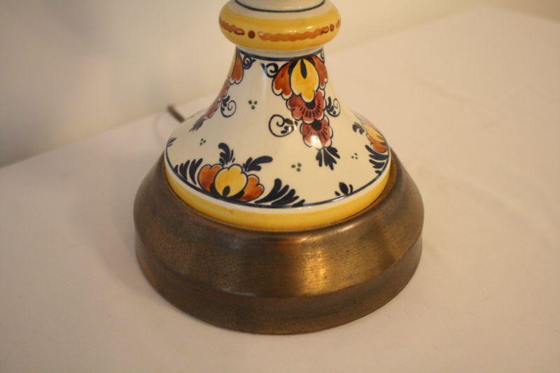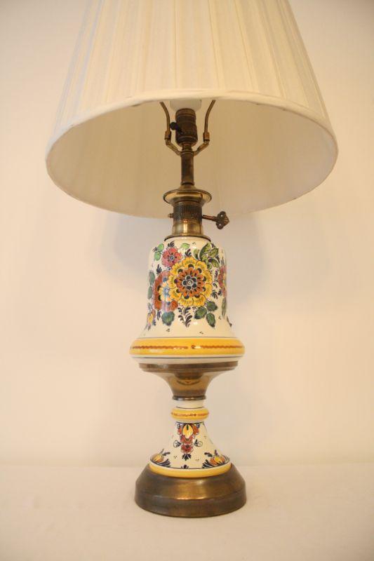 Vintage Porcelain Hand Painted Lamp Made in Holland - Large hand painted floral table lamp with brass base. Stamped "made in Holland". Works great. The base of the lamp is 6" inches and the height of the lamp is 32" inches.
