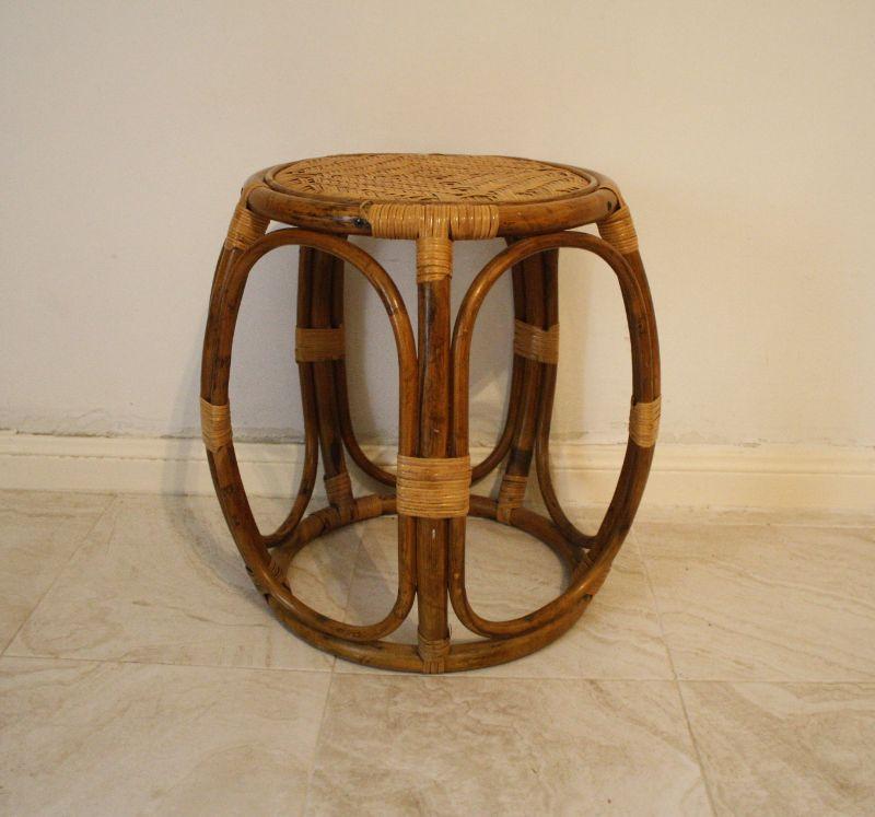 Vintage Rattan Plant Stand or Accent Table - A hand woven stand that can be used for a variety of things, including potted plants. Measures 13” (diameter) 16” (height).