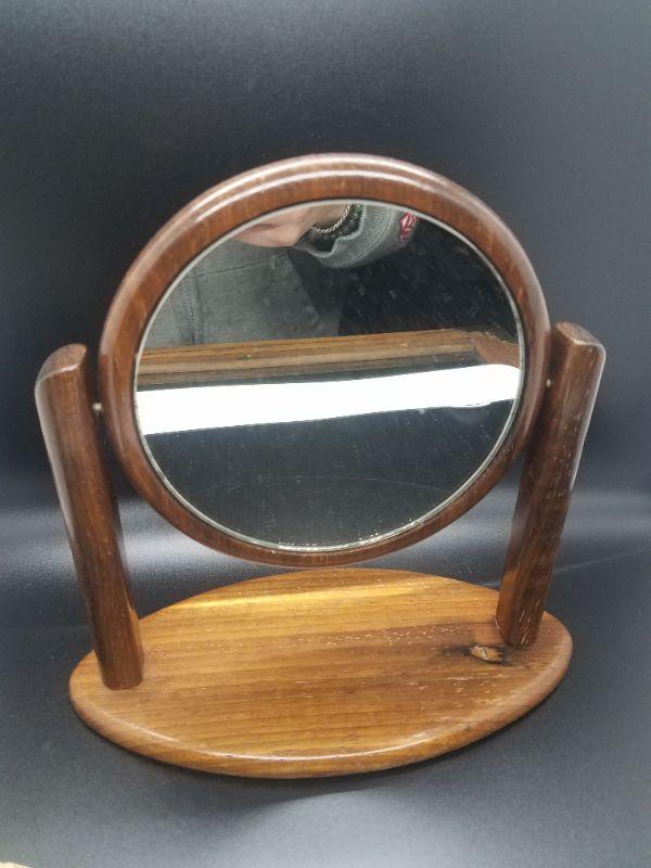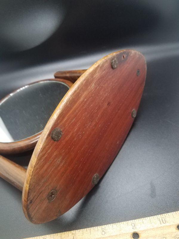 Look at your beautiful self, imperfections and all, with this vintage wood mirror.