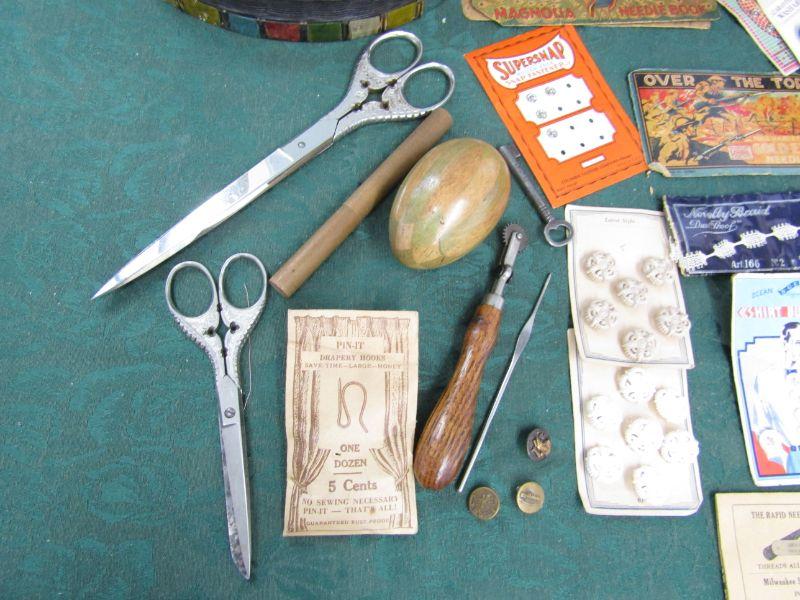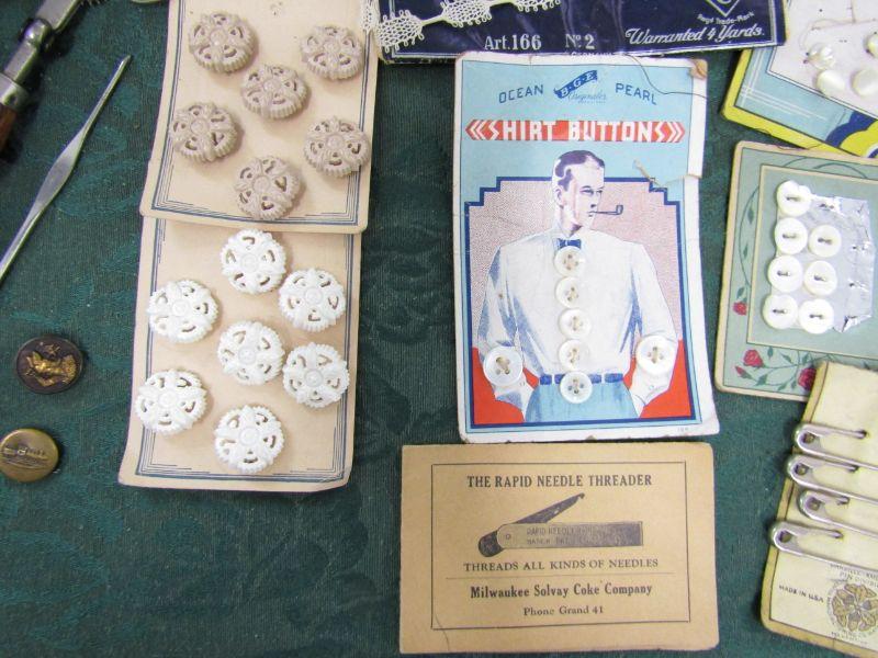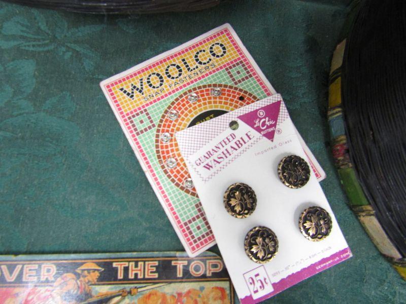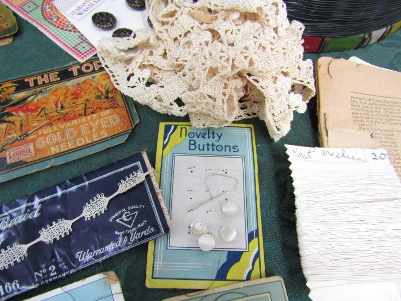 IT IS FILLED WITH MOSTLY VINTAGE SEWING NOTIONS