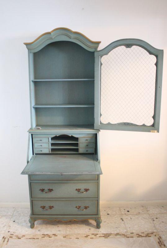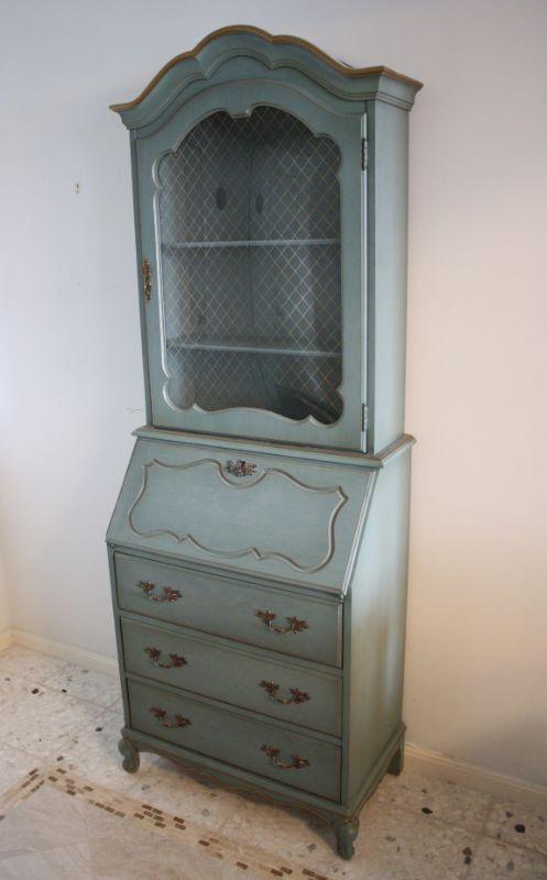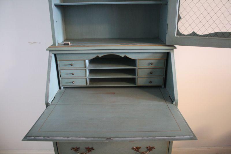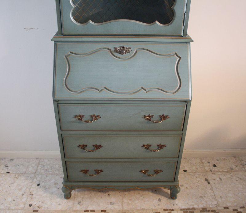 Lot #22: Vintage Teal Jasper Cabinet Style Chippendale Secretary Hutch