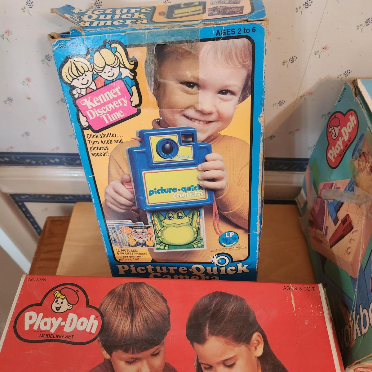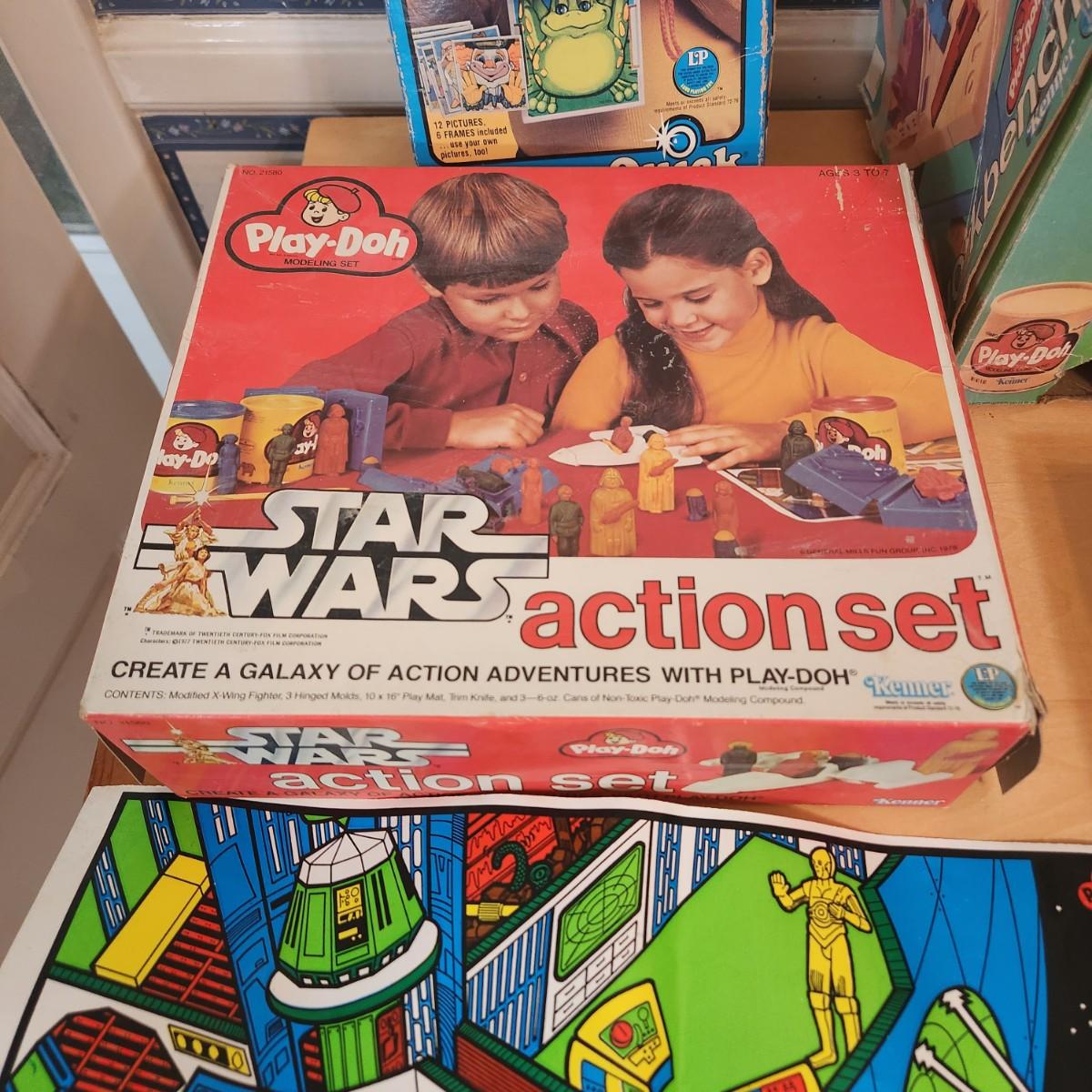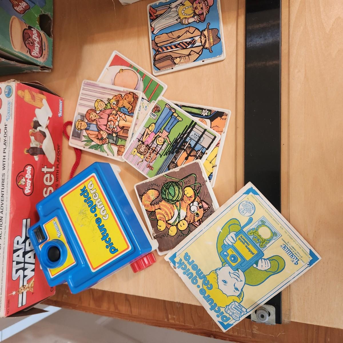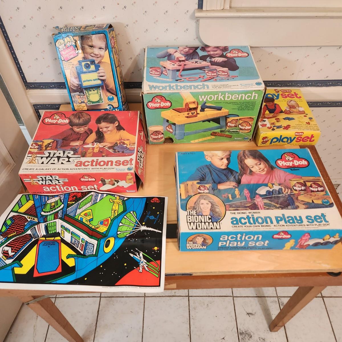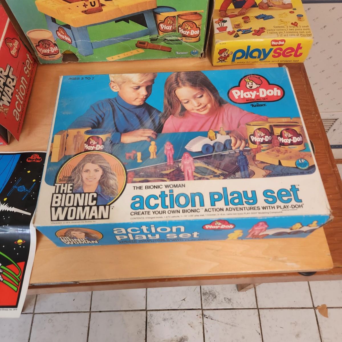 Lot Vintage Toys Star Wars, Bionic Woman, Play-Doh Kenner Discovery Time Camera