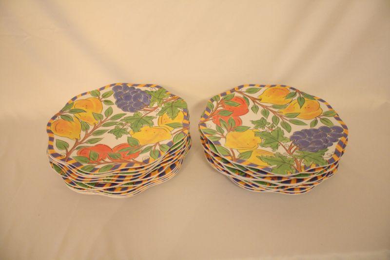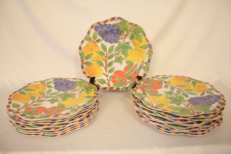 Lot #115: Vintage Trudeau Plastic Dinner Plates Fruits Pattern 22 Piece