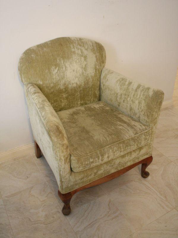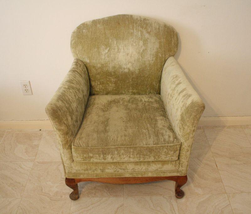 Lot #17: Vintage Velvet Green Armchair