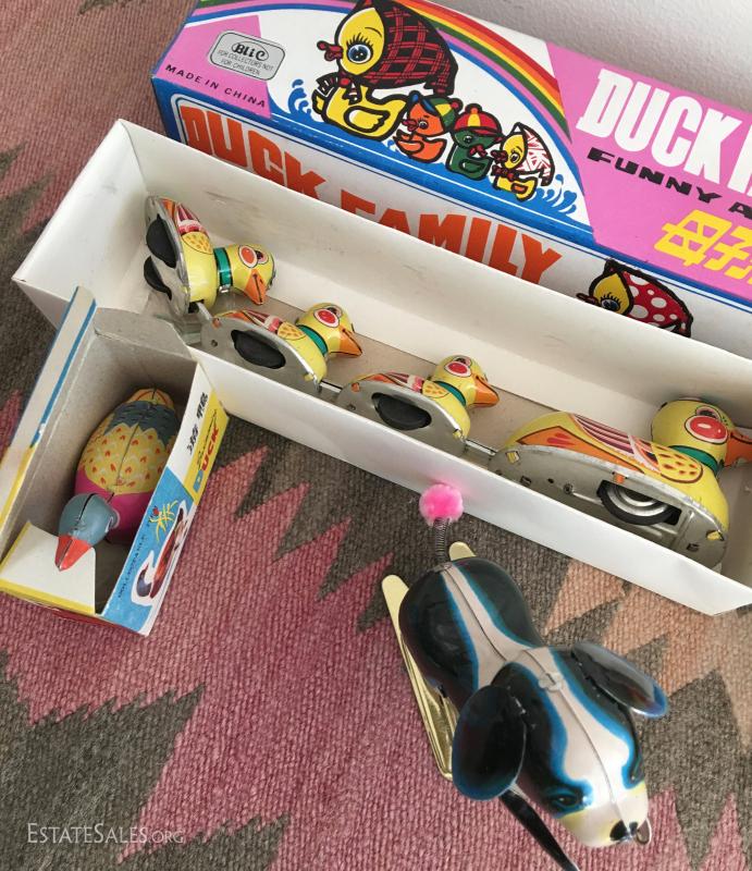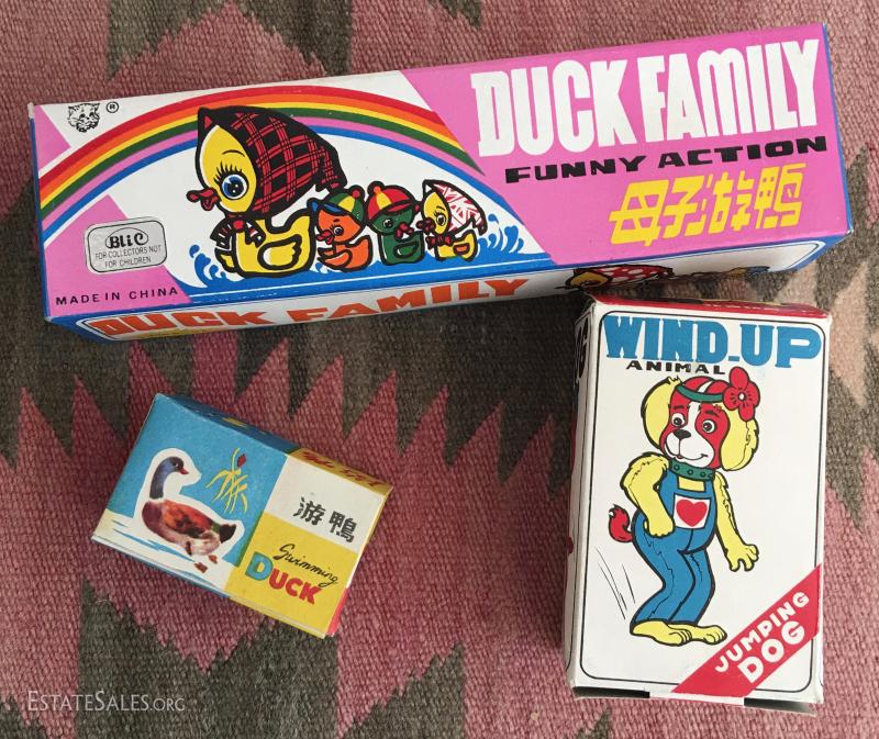 Lot Vintage Wind-Up Tin Toys Ducks Dog NEW in Box