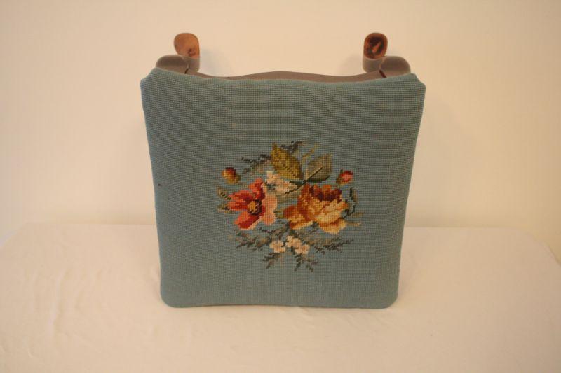 Lot #109: Vintage/Antique Embroidered Needle Point Turquoise Foot Stool
