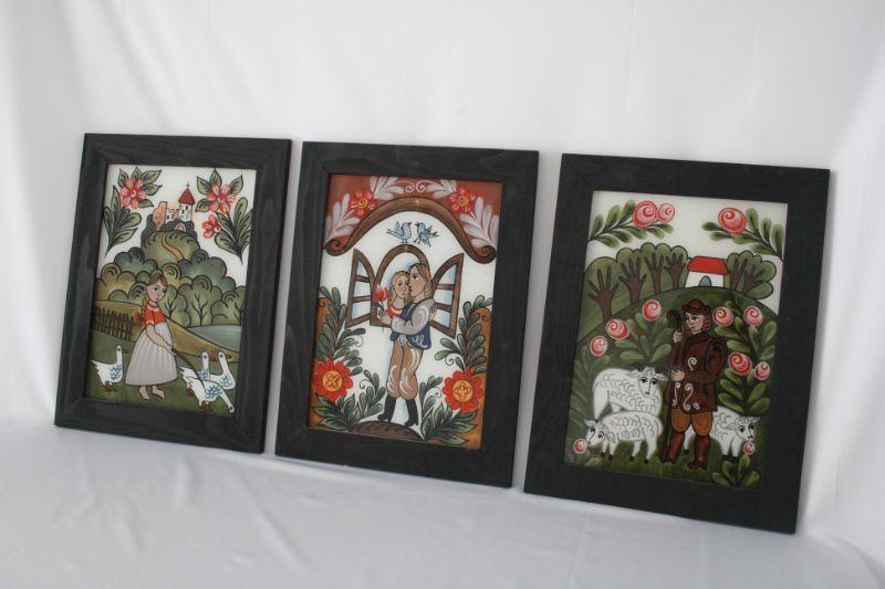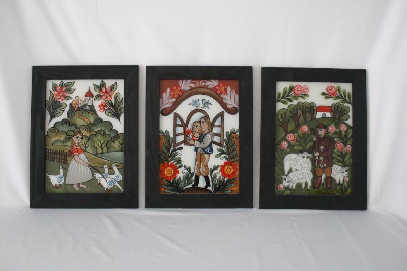 Lot of three paintings on glass. Artist is Vlasta Mikundova from Zlin Czech Republic. Measures 11" x 14.5"