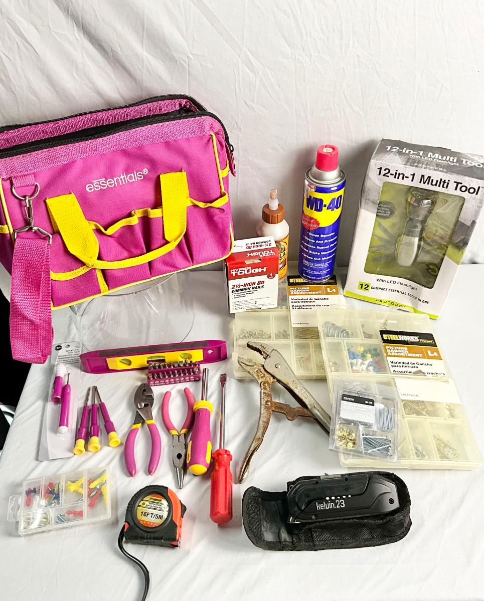 Pink Tool Bag Lot includes