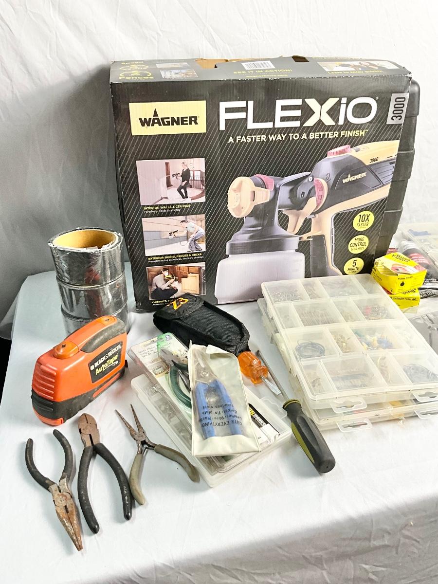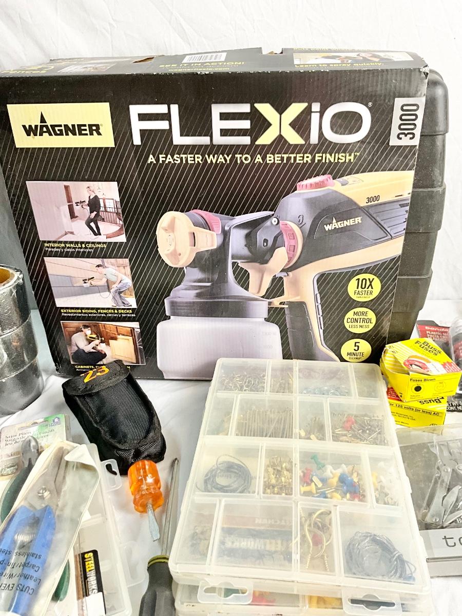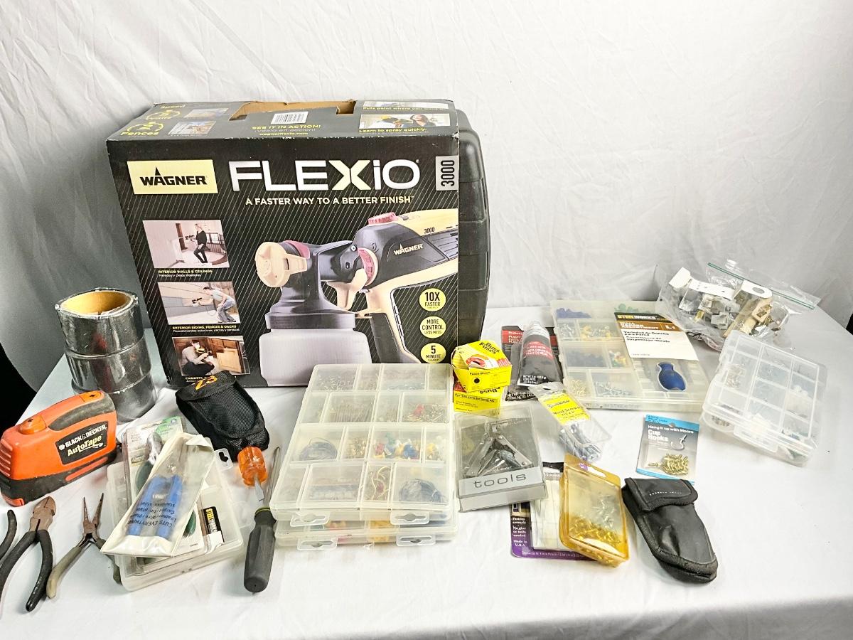NIB FLEXiO Paint Sprayer, Picture Hanger Kits, Various Small Tools and more