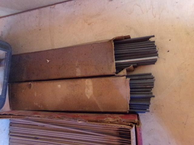 LOTS OF WELDING RODS, EXTENSION CORD AND 2 METAL BOXES.