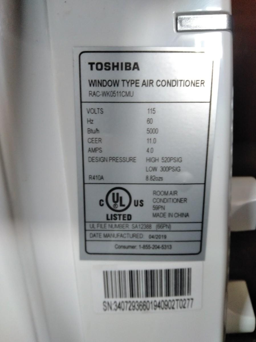TOSHIBA WINDOW AIR CONDITIONER MODEL NUMBER RAC-WK0511CMU