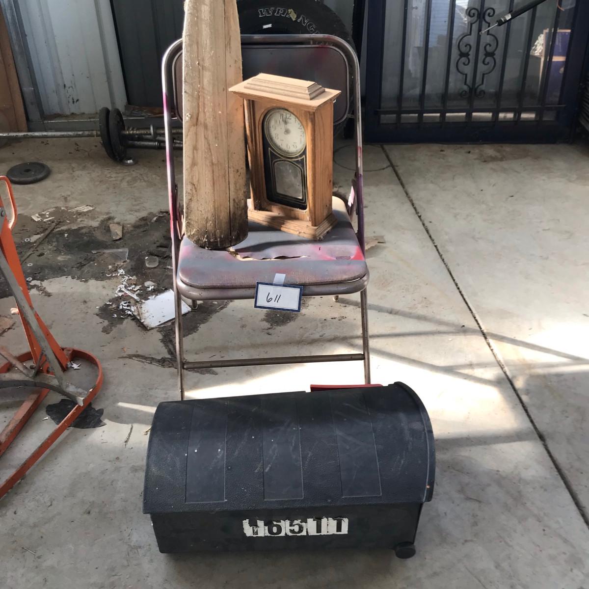 Paddle, Clock, mail box, & chair. Surely JR could have written a joke for this lot...All AS IS.