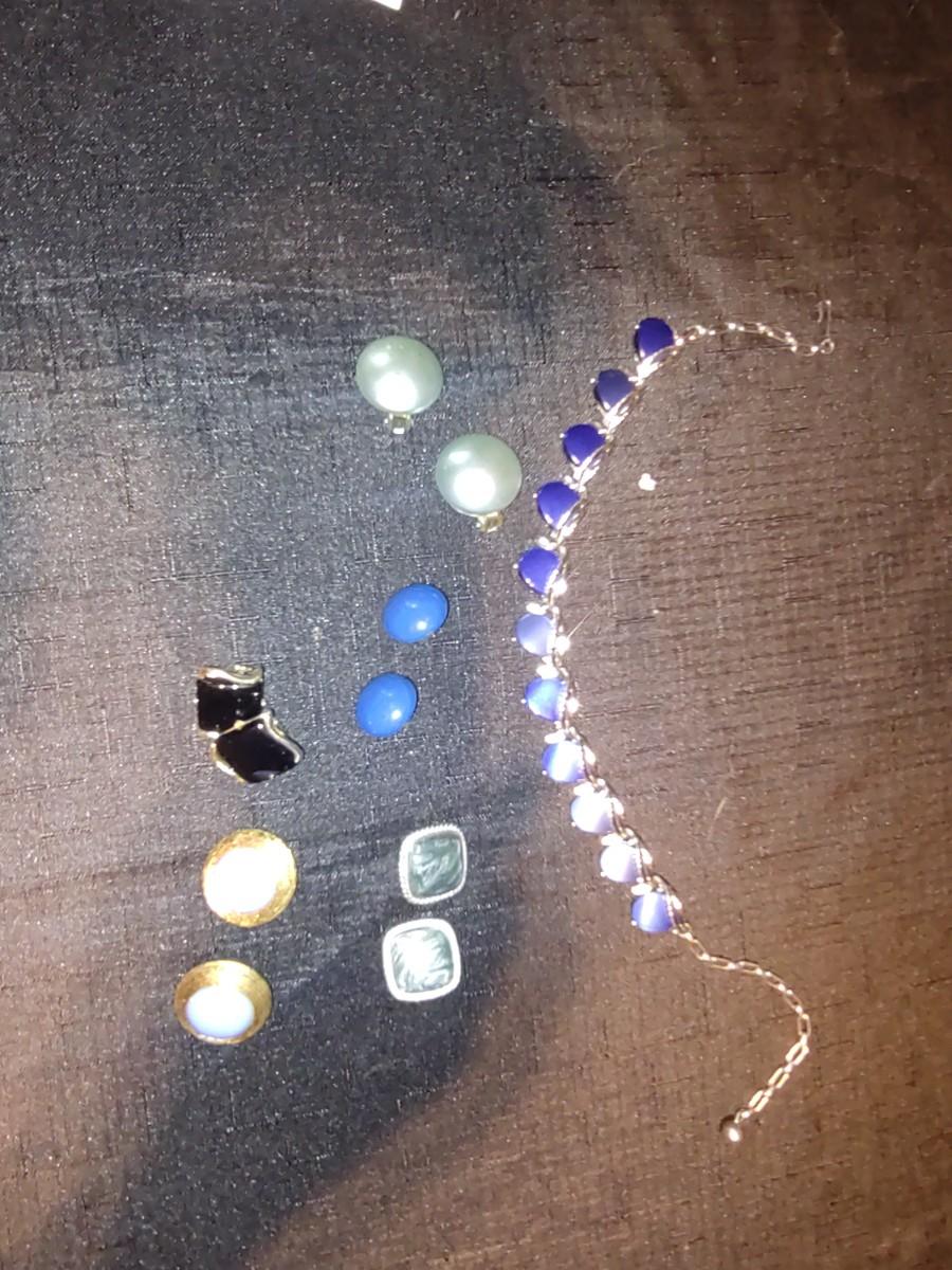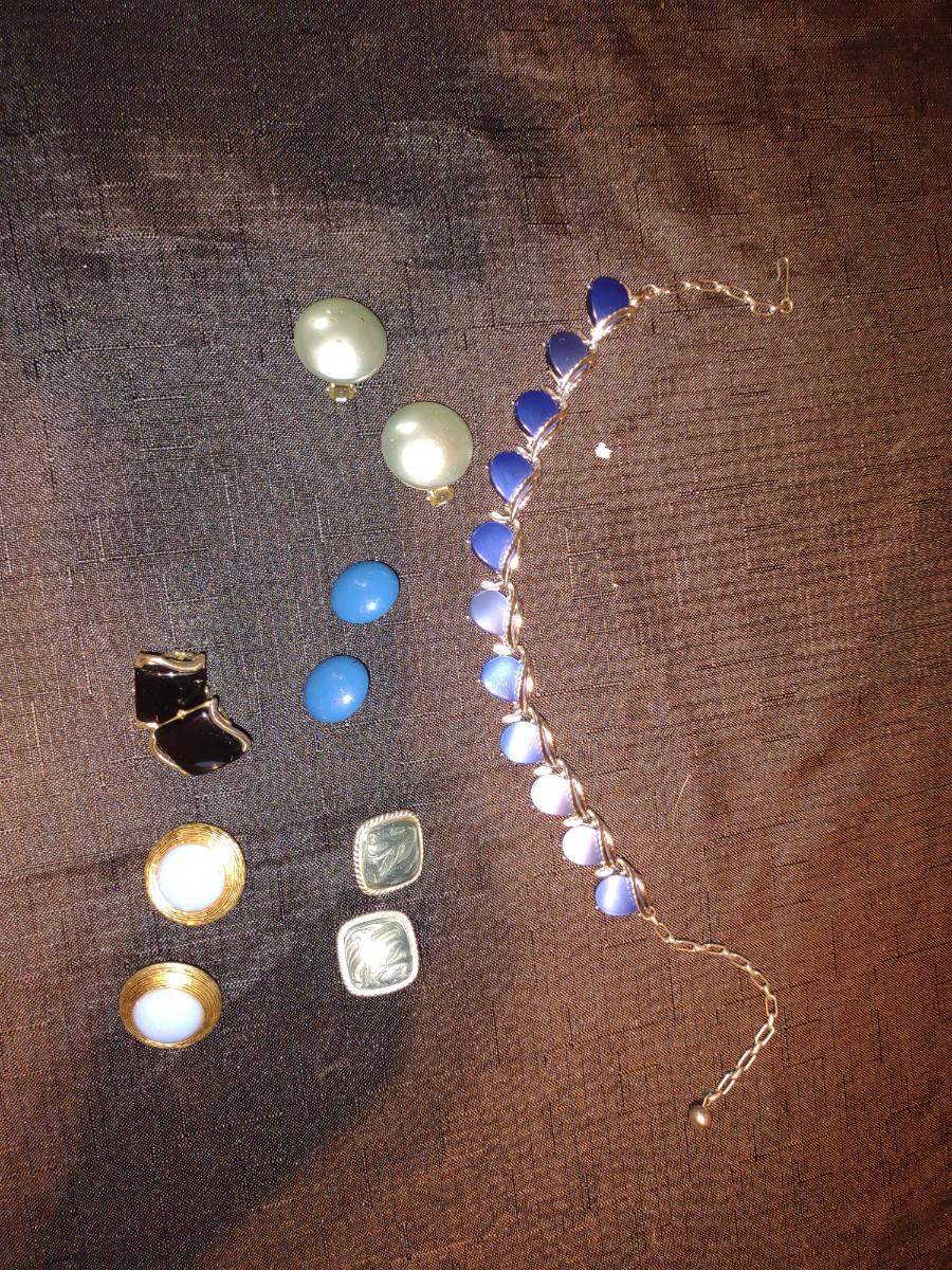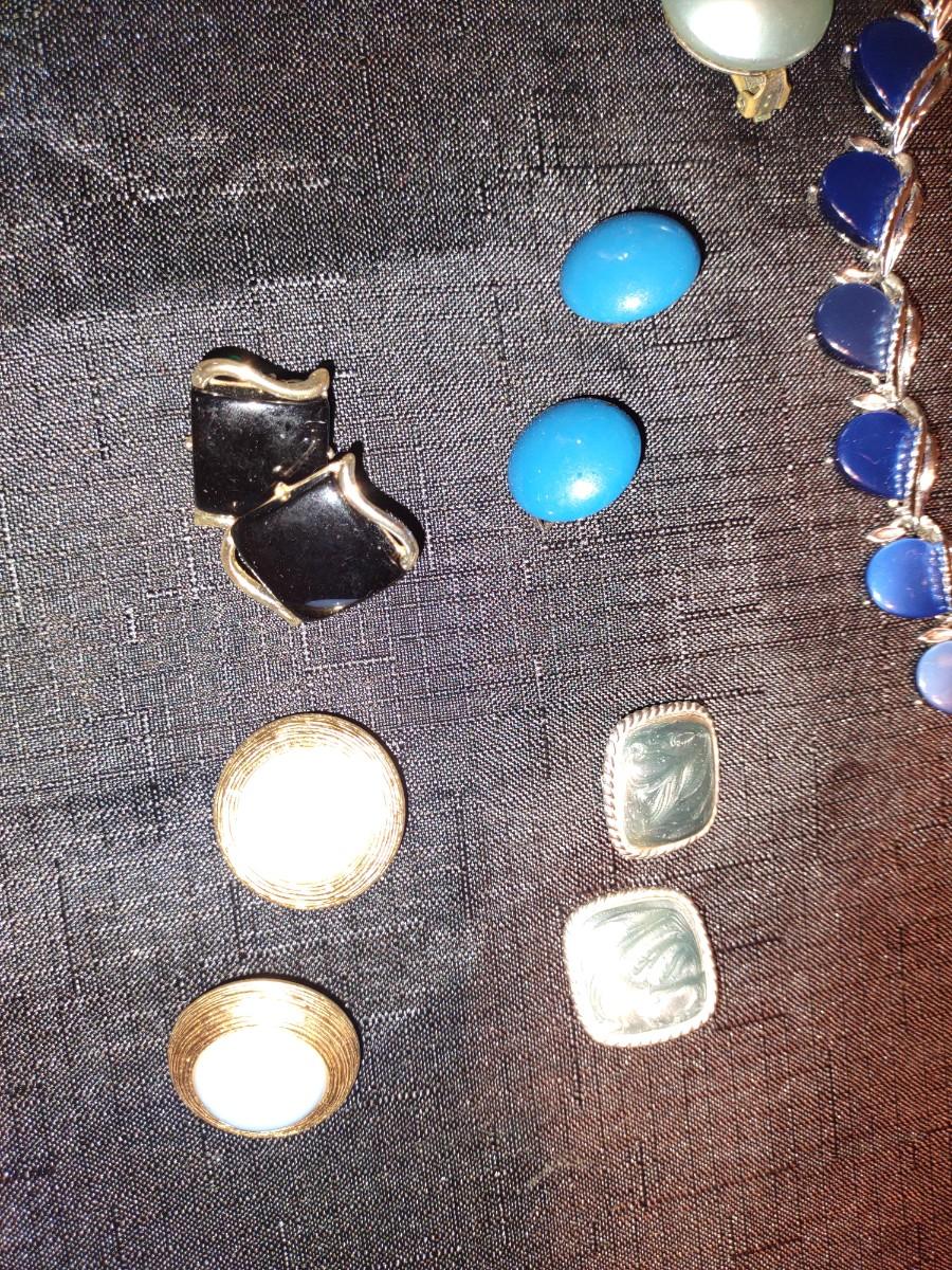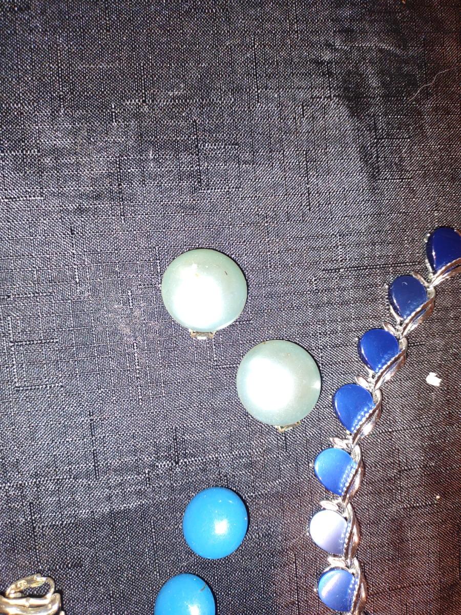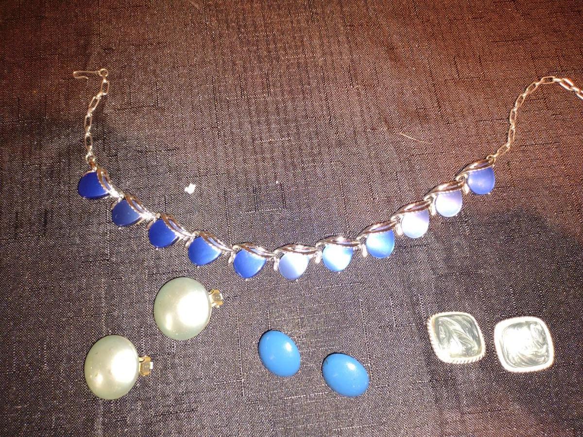 WOMEN'S COSTUME JEWELRY. CLIP ON EARRINGS AND BEAUTIFUL BLUE NECKLACE