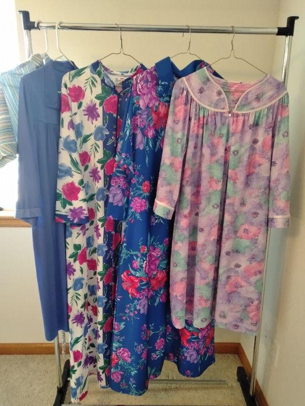 FOUR NIGHTGOWNS AND ONE VINTAGE ROBE. SIZE MEDIUM