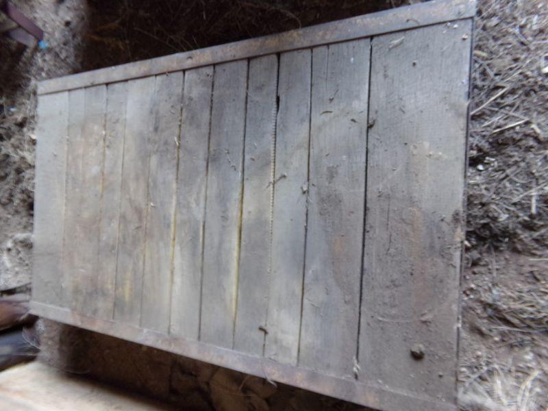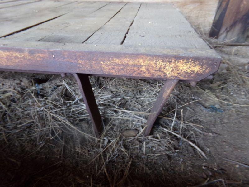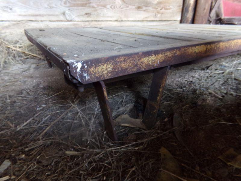 LARGE WOOD PLATFORM WITH STEEL FRAME AND CAN ACCOMMODATE WHEELS. LOOKS STURDY AND CAN HOLD A GOOD AMOUNT OF WEIGHT.