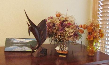 LOT 157  WOODEN MARLIN, DRIED FLOWERS & MORE