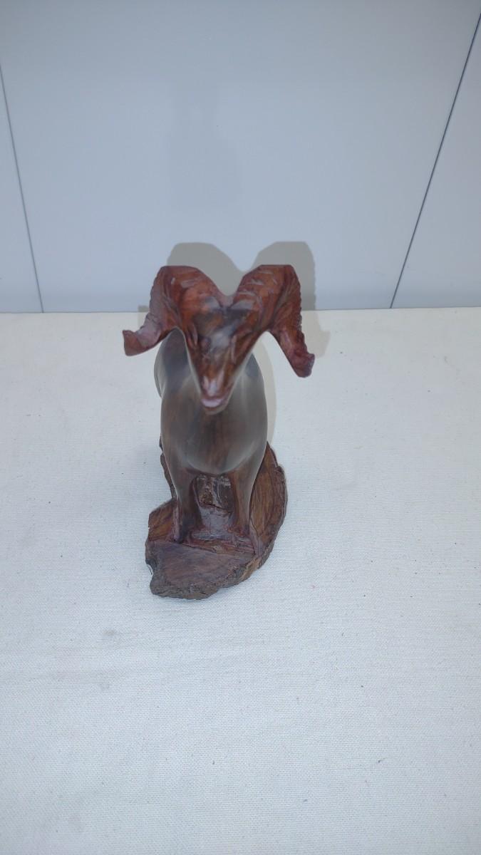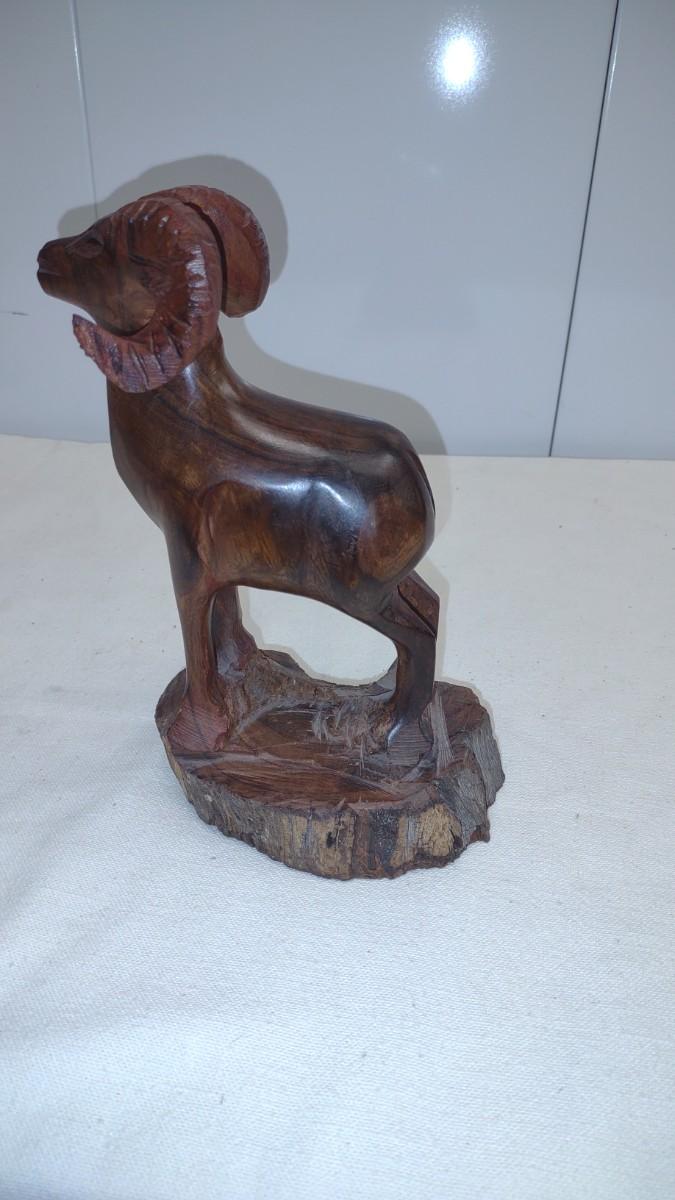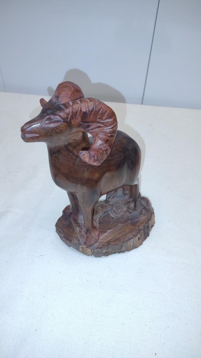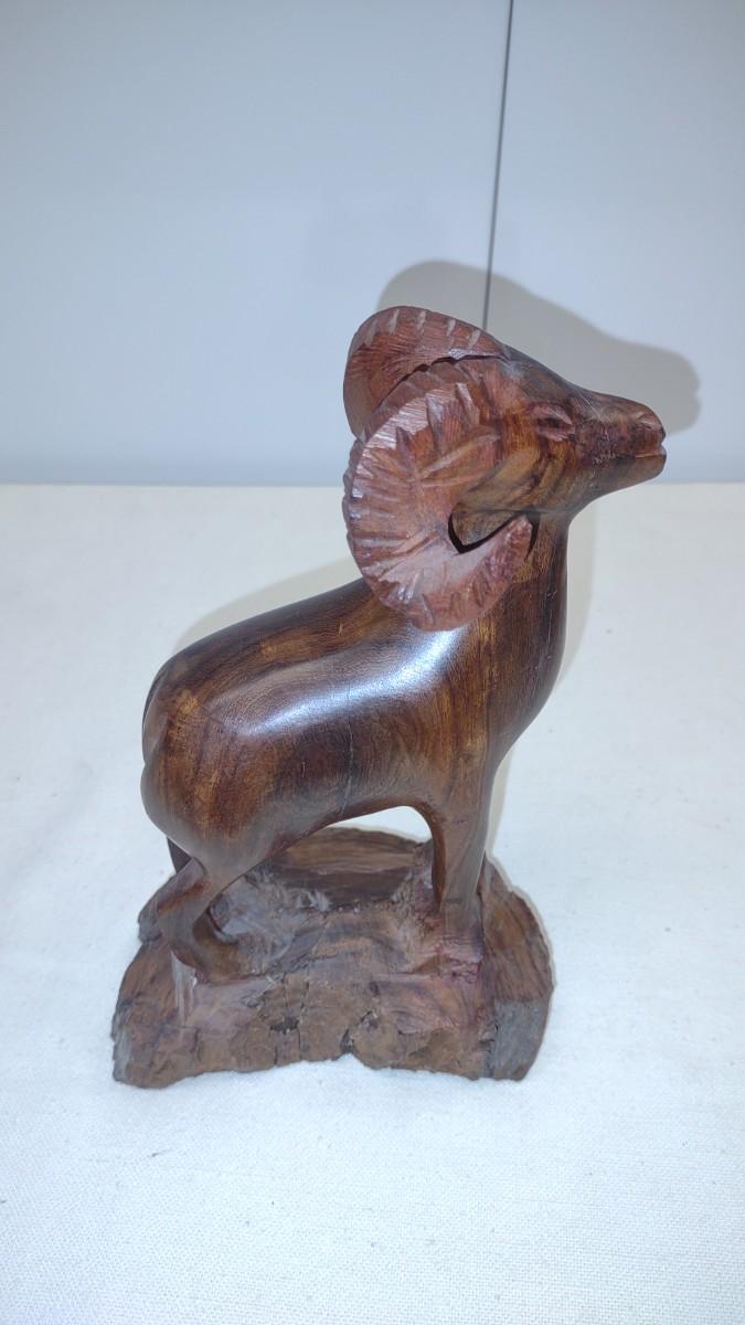 HAND-CARVED WOODEN RAM. VERY DETAILED AND HEAVY NO SIGNATURE OR MARKINGS.