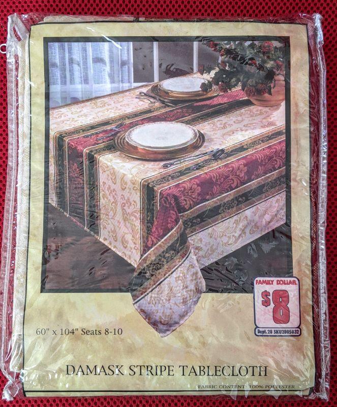 Lot 48 S NIP New and unused Vintage tablecloth Damask Stripe 60" x 104"