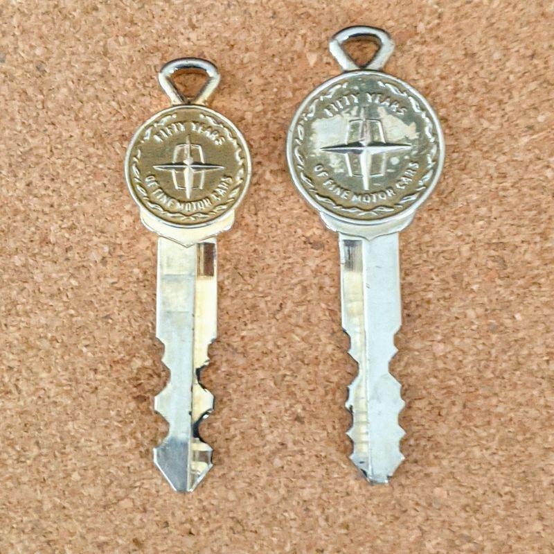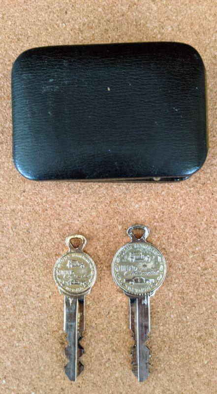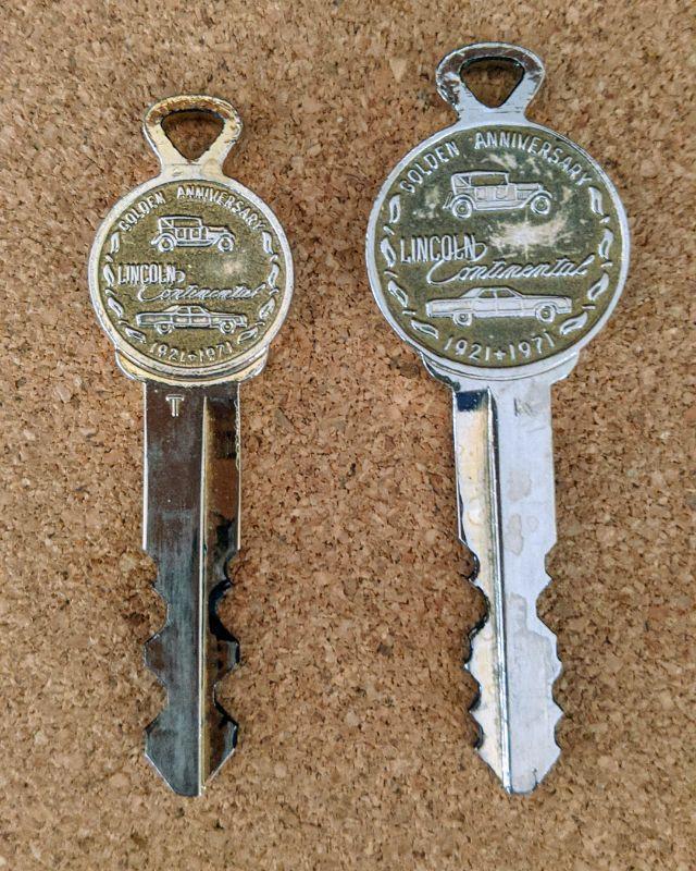 Lot #100 s Set of 2 Lincoln Continental Golden 50th Anniversary Car Keys with case Trunk and Ignition