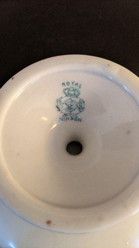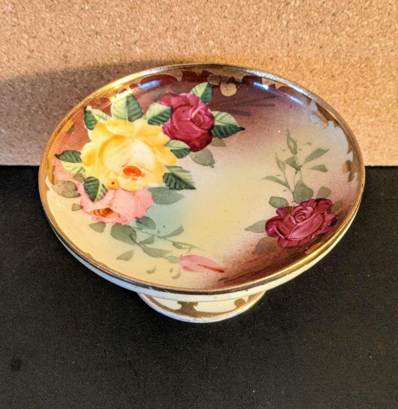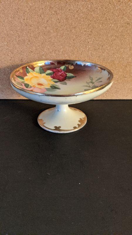 Lot# 105 s Vintage Royal Nippon hand painted Pedestal candy dish with Fruit topped cake candle 5"