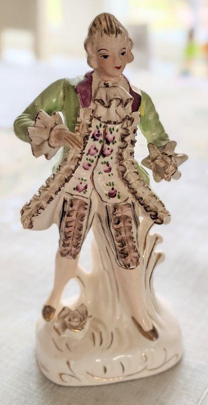 Lot 279 s Vintage Figurine of man in colonial garb-Green and purple Wales