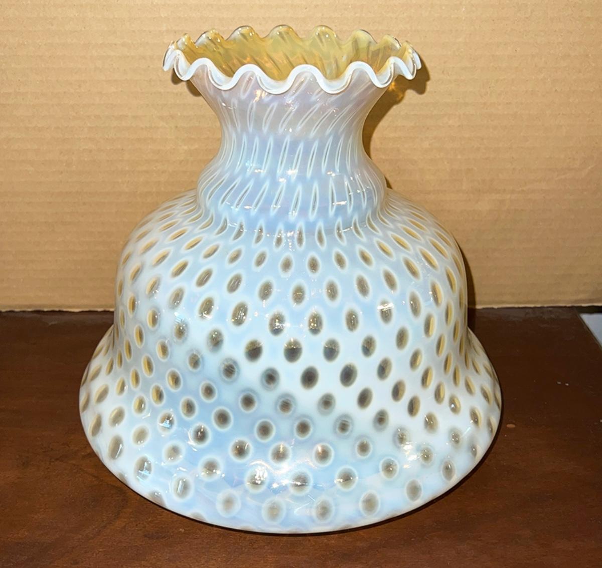 Hand Blown Fenton Art Glass Lamp Shade Dot Pattern. 9" tall x 10.5" across.