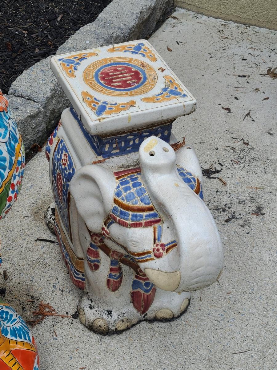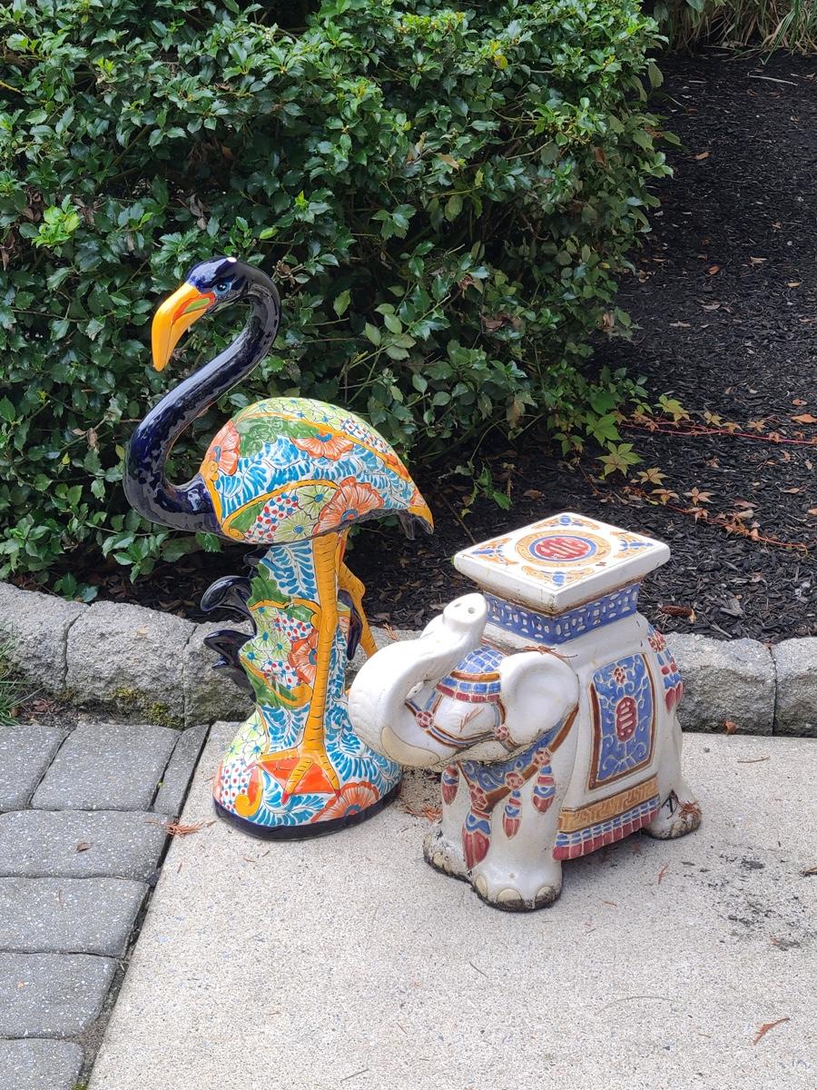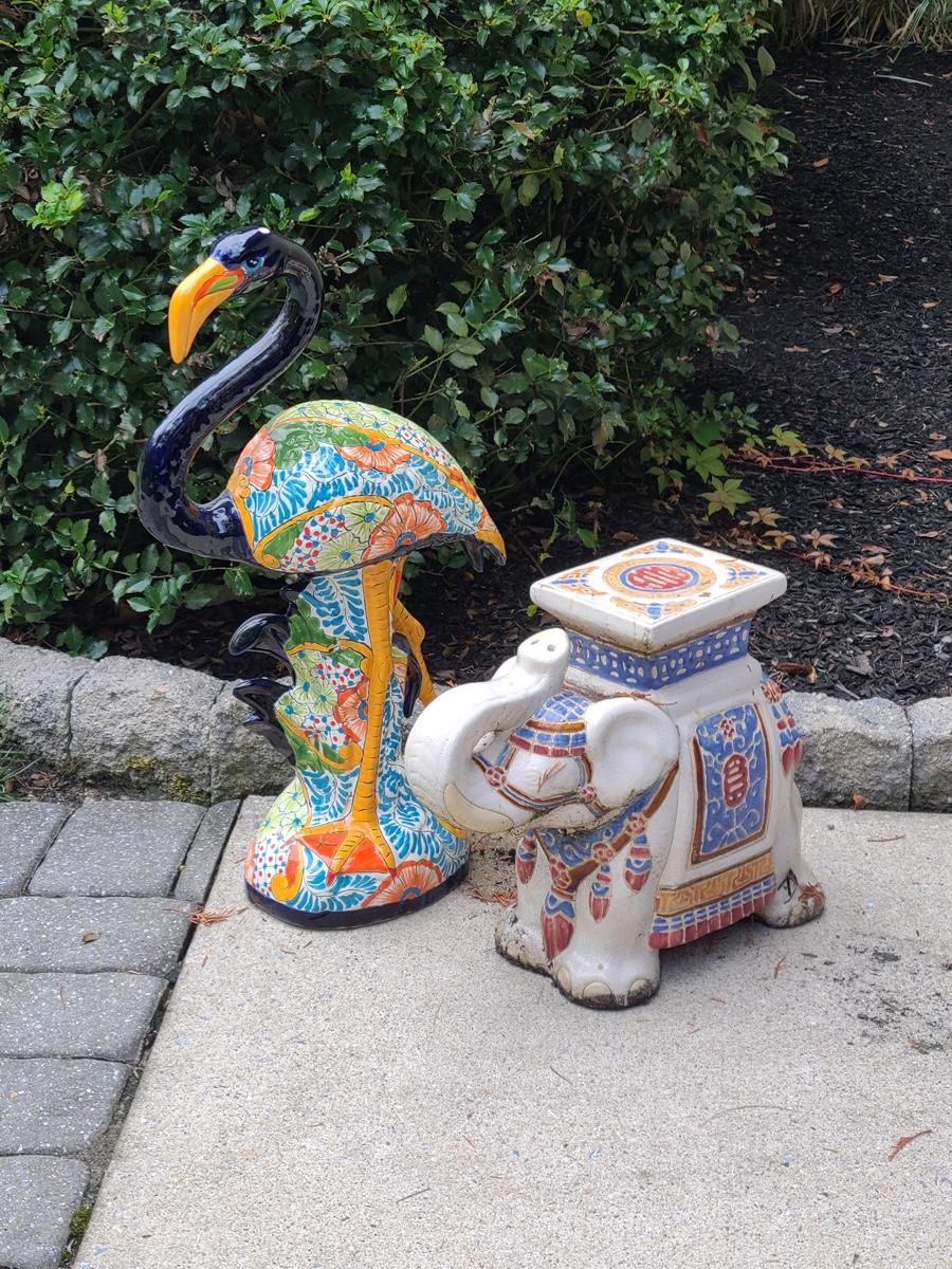 Lot Y20: Ceramic Garden Art/ Plant Stand (Flamingo and Elephant)