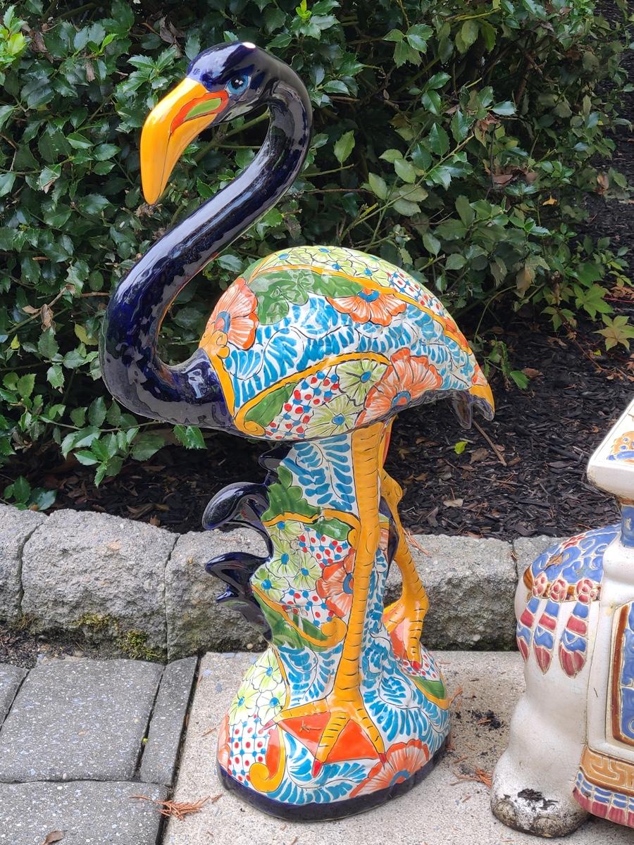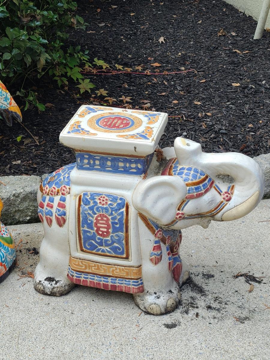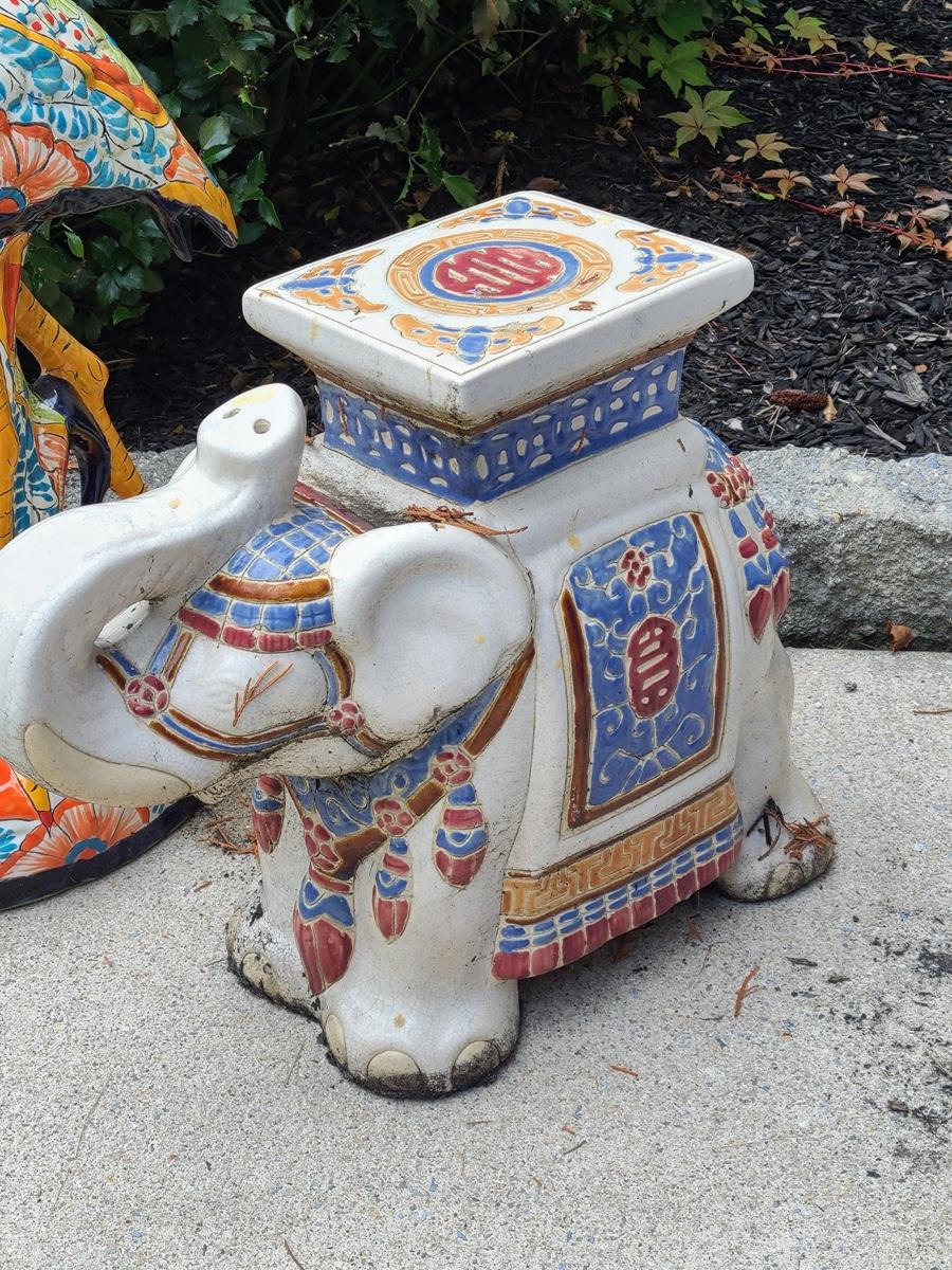 Lot Y20: Ceramic Garden Art/ Plant Stand (Flamingo and Elephant)