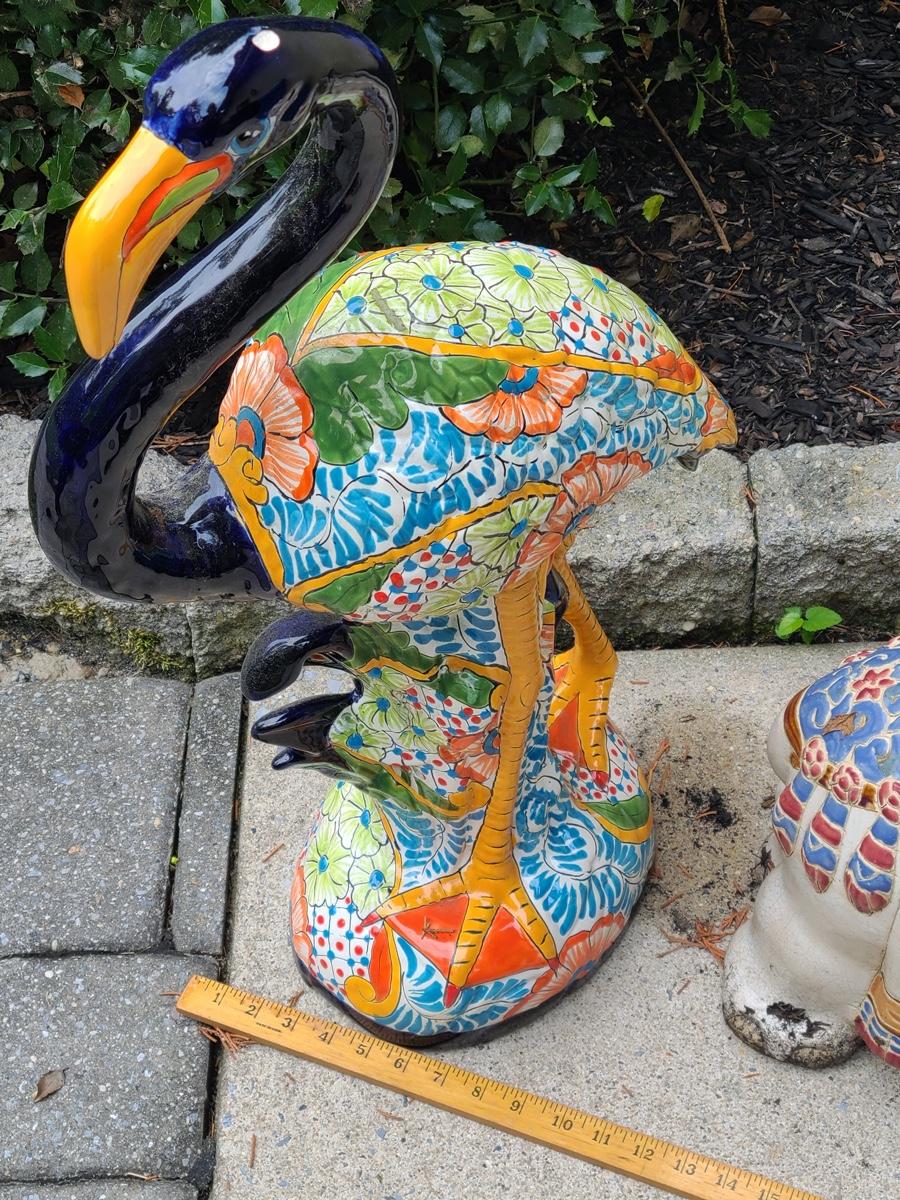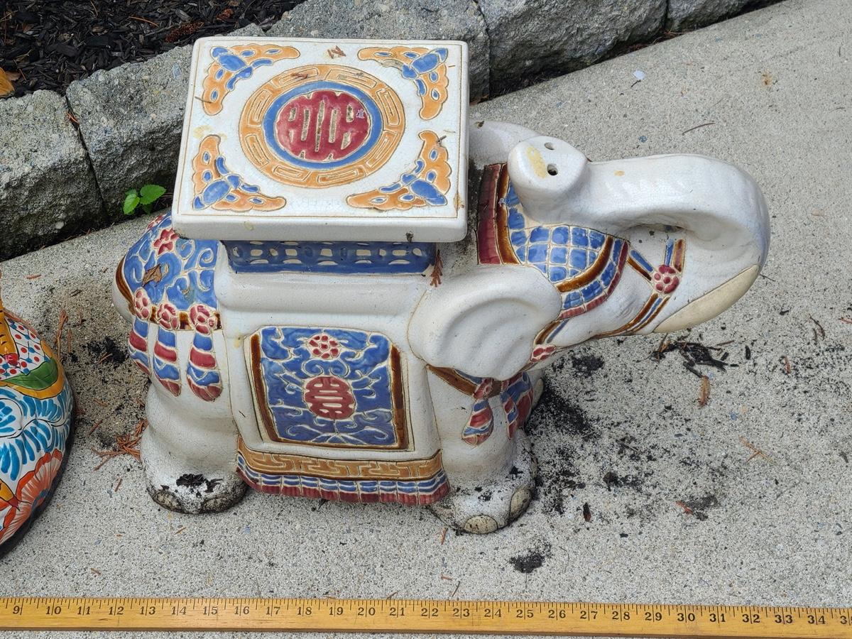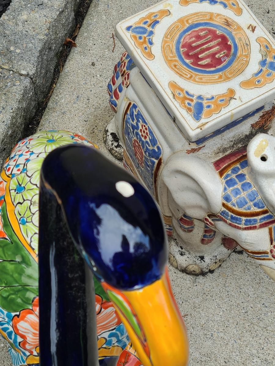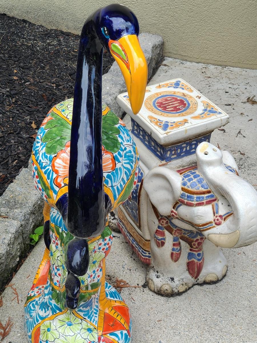 Lot Y20: Ceramic Garden Art/ Plant Stand  (Flamingo and Elephant)