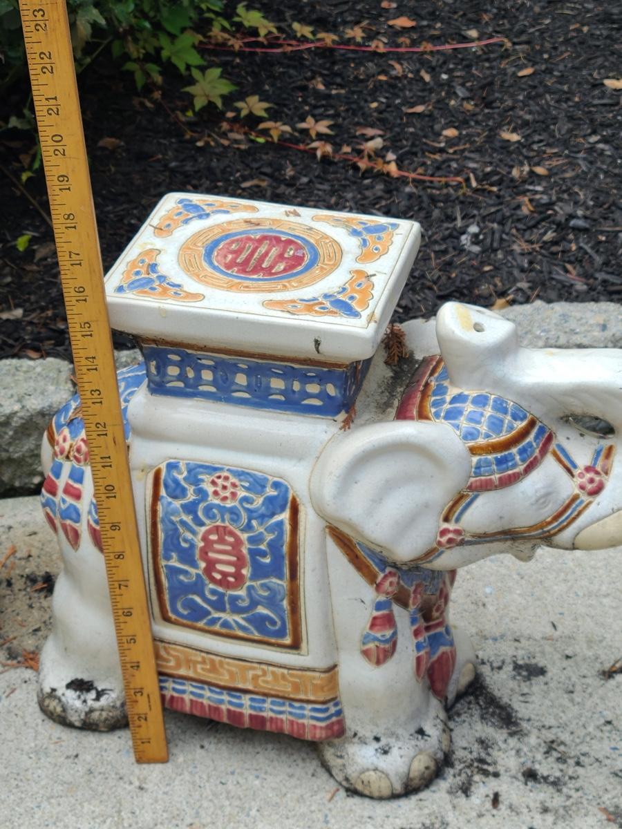Both of these have been displayed outside and show wear. The vibrant flamingo has a small chip in the head, and the elephant can use a light cleaning if brought inside. Functional and fun to look at! Please see all pictures as they are the best representation of the items. The pictures show condition, measurements if taken, and what is included in the lot. Due to the large amount that we photograph and the time frame, we are not always able to take measurements. All items unless noted, are pre-owned and have been used. If you purchased furniture, you must bring help. We do not allow one person to carry large furniture out on their own. Bring help, tools and a truck for the safety of our clients homes, and your personal safety. Company policy. Thank you.
