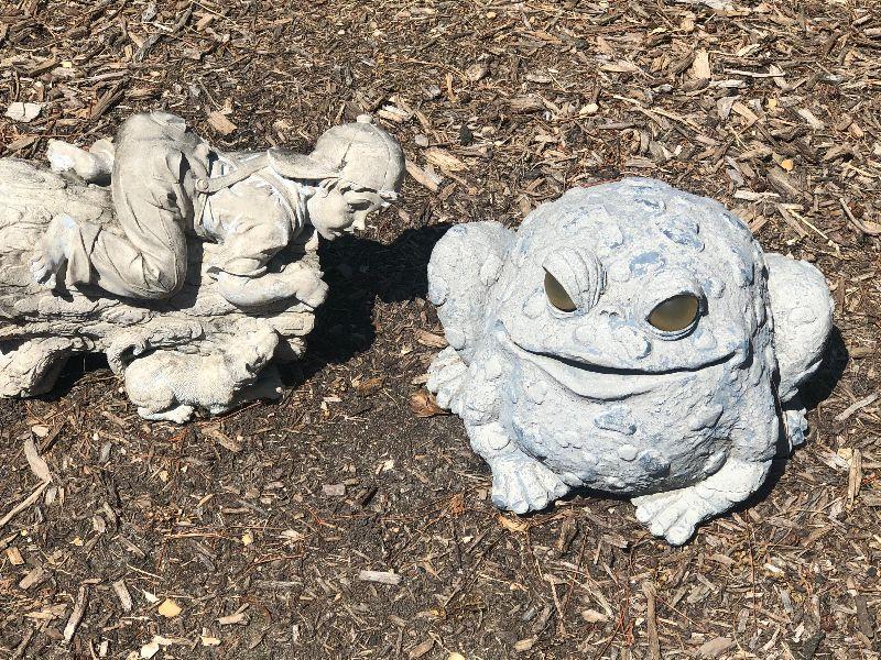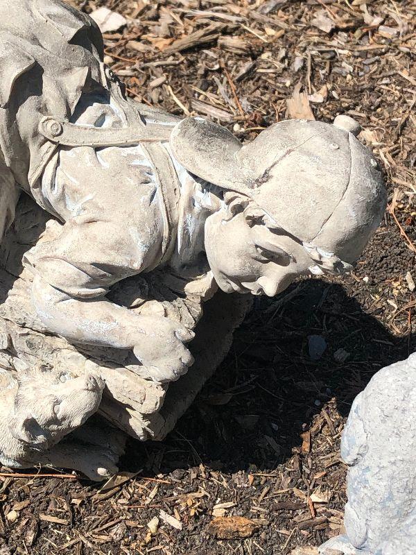 Boy with puppy and a fat toad.