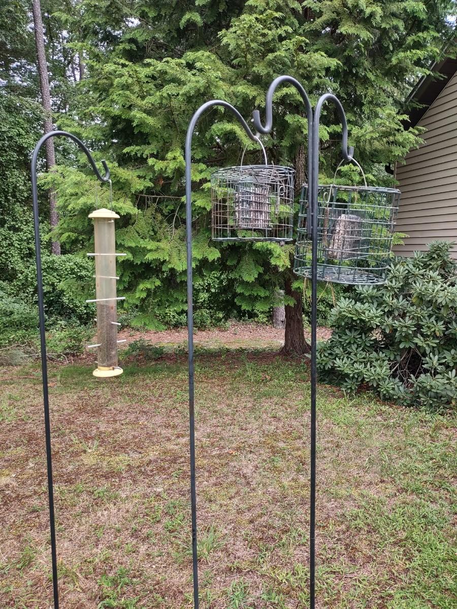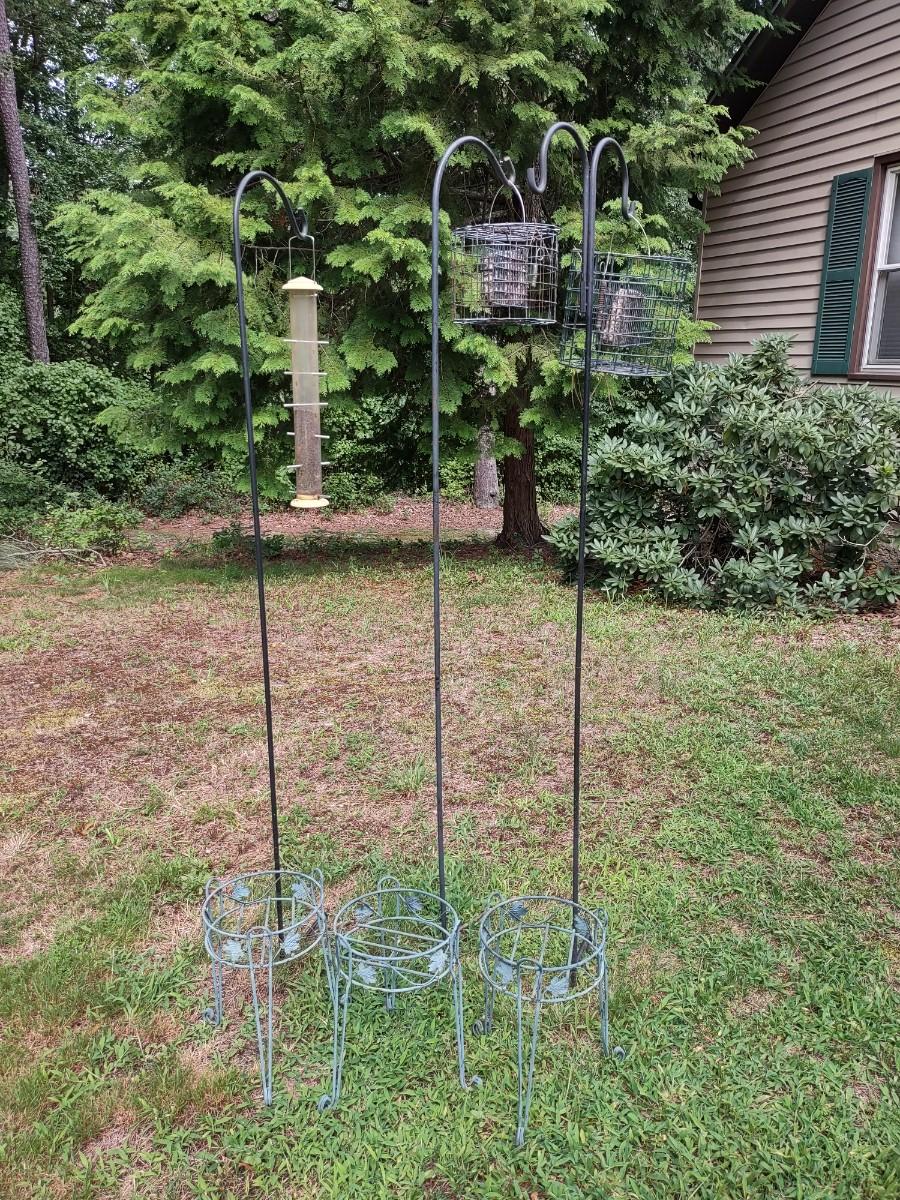 Lot Y1: 3 Shepard Hooks With Bird Feeders & 3 Plant Holders