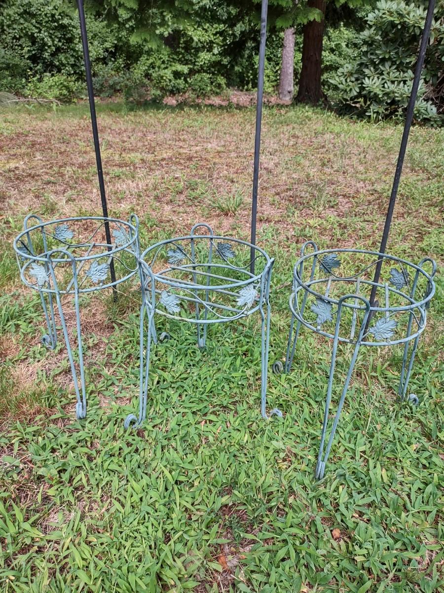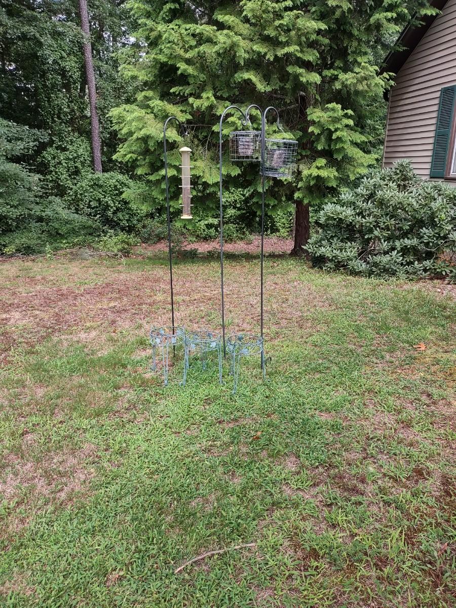 14" Metal Shepard Hooks And Metal Plant Holders. Bird Feeders Included Please see all pictures as they are the best representation of the items. The pictures show condition, measurements if taken, and what is included in the lot. Due to the large amount that we photograph and the time frame, we are not always able to take measurements. All items unless noted, are pre-owned and have been used. If you purchased furniture, you must bring help. We do not allow one person to carry large furniture out on their own. Bring help, tools and a truck for the safety of our client’s homes, and your personal safety. Company policy. Thank you.