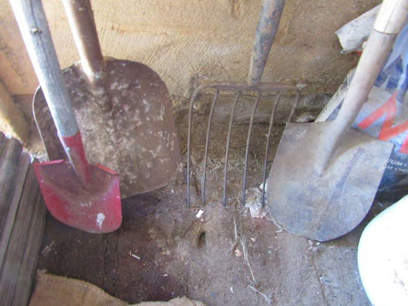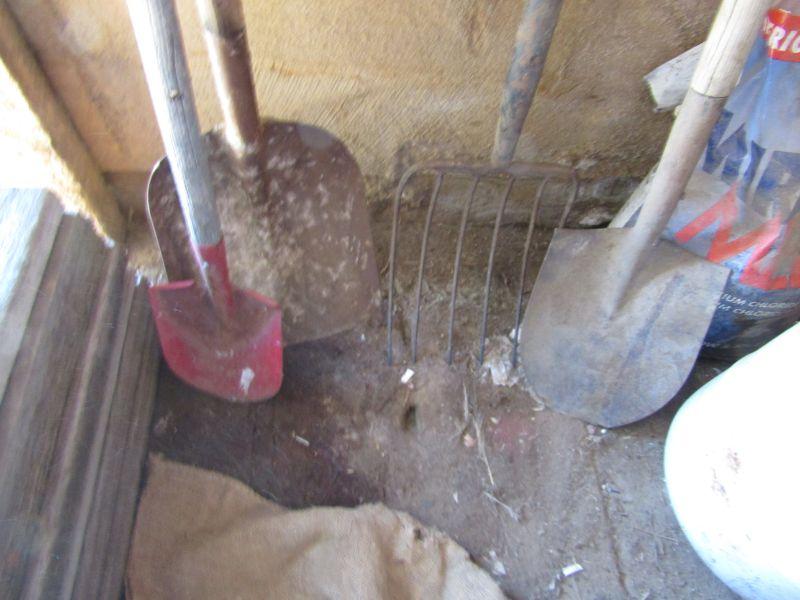 SHOVELS, PITCHFORK, PROPANE TANK AND MORE