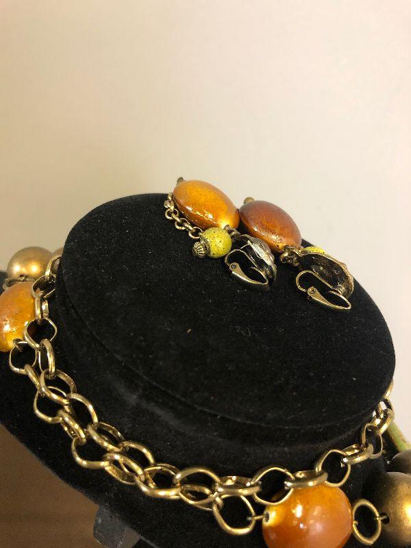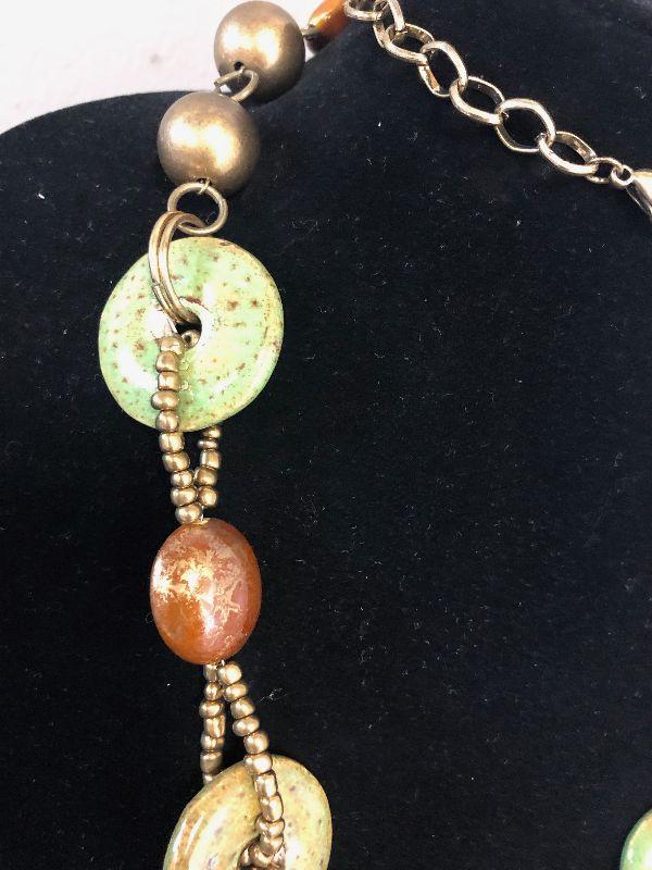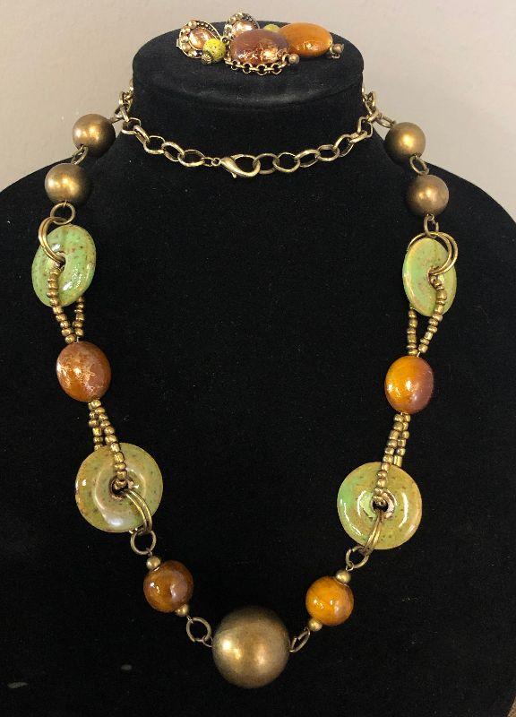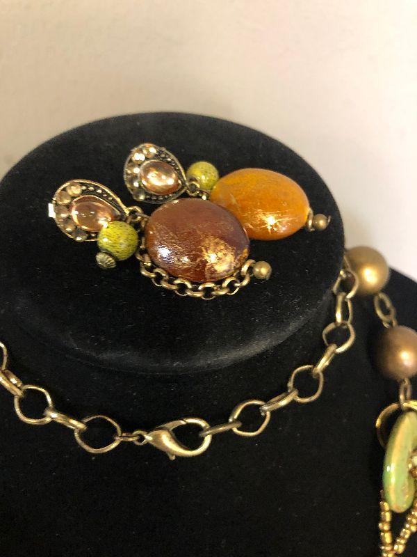 Lot#070 Fall Tones (orange, green and tan) Necklace and Earrings