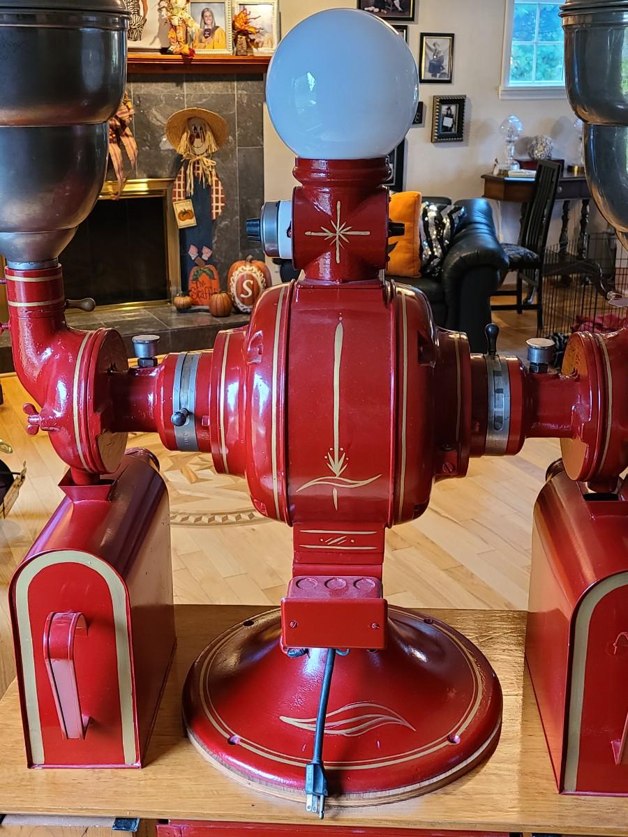 This incredible piece works! The motors turn, and the light functions. The piece itself is cast iron and looks to have original hoppers. The base was made for the piece and is newer. It is on castors to move the piece around freely. You will need a large vehicle and help to move this! The pictures show condition, measurements if taken, and what is included in the lot. Due to the large amount that we photograph and the time frame, we are not always able to take measurements. All items unless noted, are pre-owned and have been used. If you purchased furniture, you must bring help. We do not allow one person to carry large furniture out on their own. Bring help, tools and a truck for the safety of our client’s homes, and your personal safety. Company policy. Thank you.