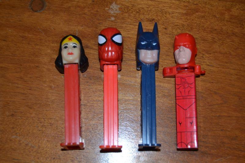 Batman, Wonderwoman, Spiderman, and DareDevil walk into an online auction... Ha, seriously though this is a neat lot of FOUR Vintage Pez.
