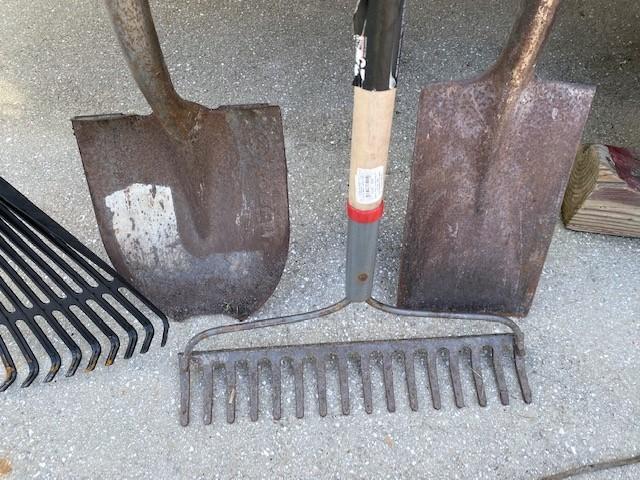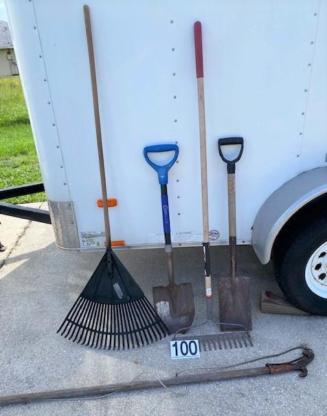 Includes shovels, rakes, and more. Total of five pieces. *Trailer not included