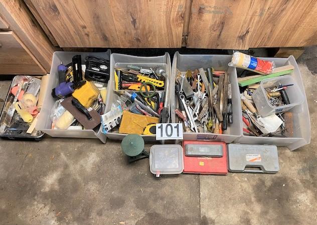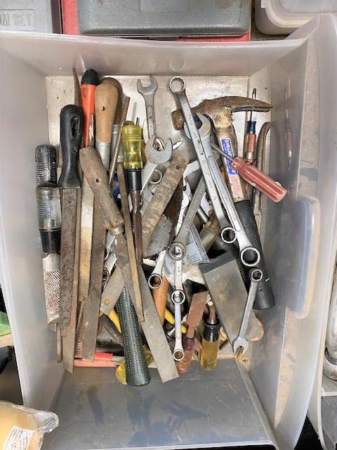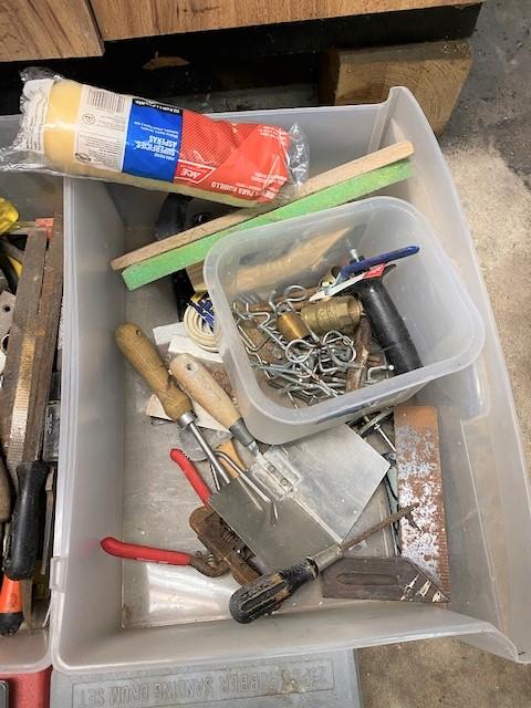 trowels, wrenches, screw drivers, painting supplies, files, chisels & more. Estimated total lot weight: 100lbs.