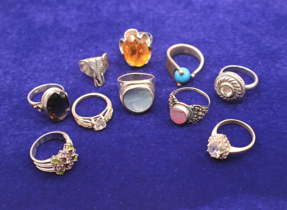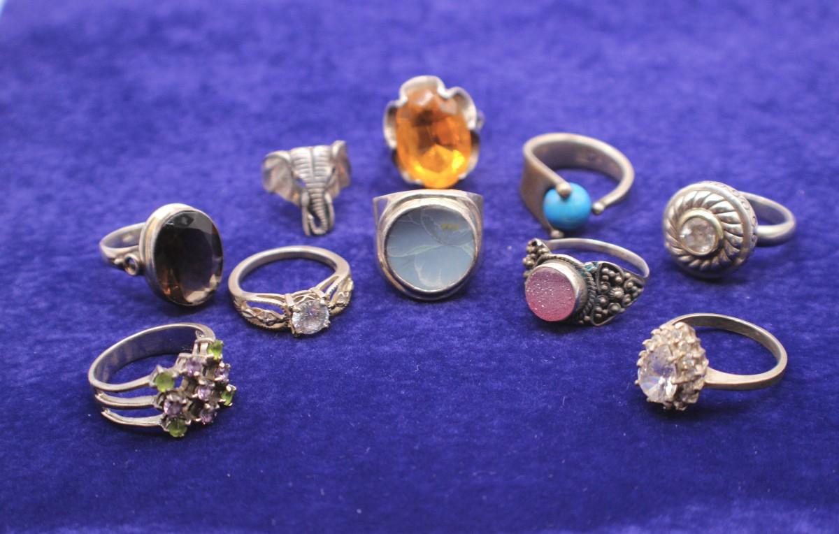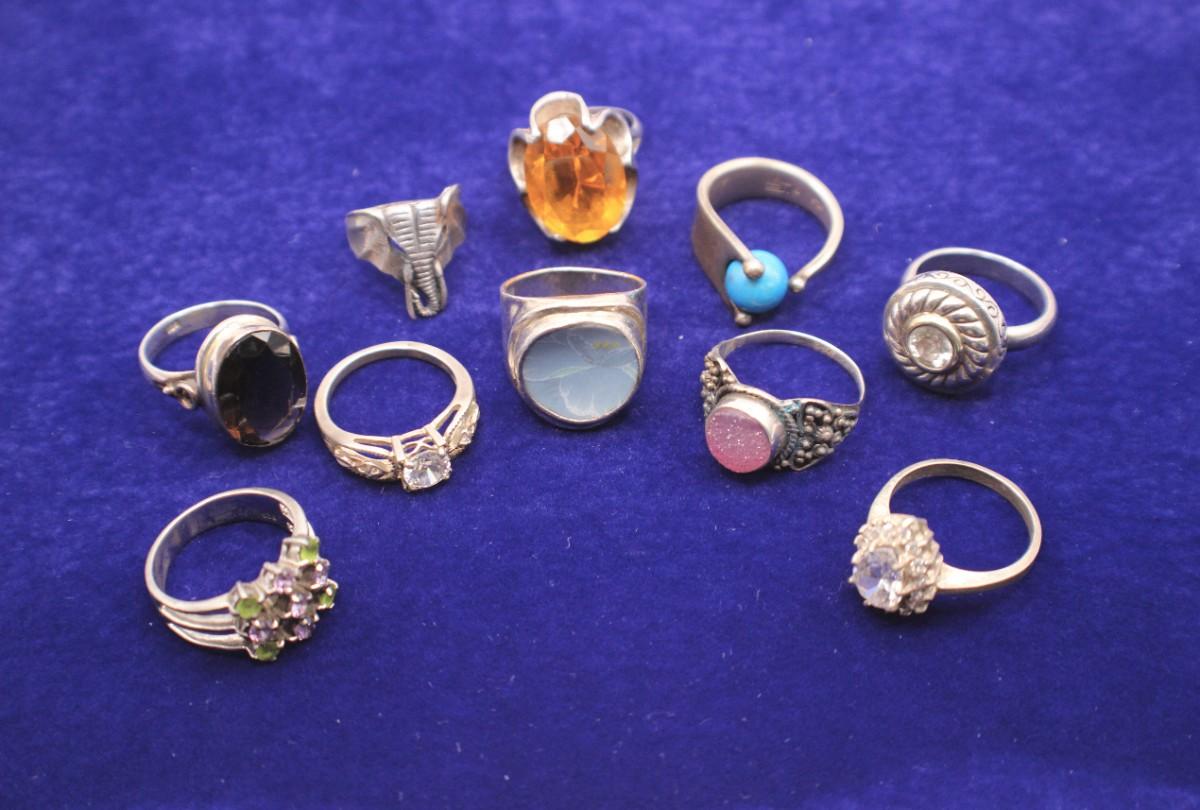 LOT#102: 10 Marked and/or Tested .925 Rings Lot #4 [56g]