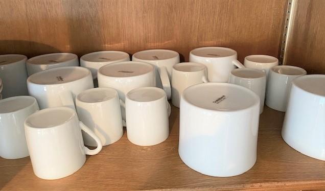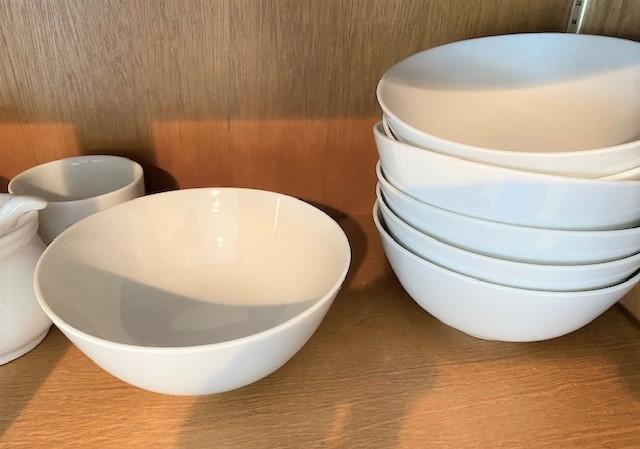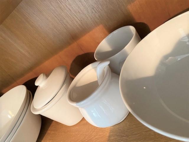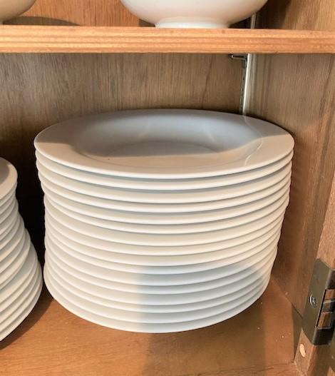 100+ . Includes: bowls, soup bowls, dinner plates, salad plates, coffee mugs, espresso cups & more.