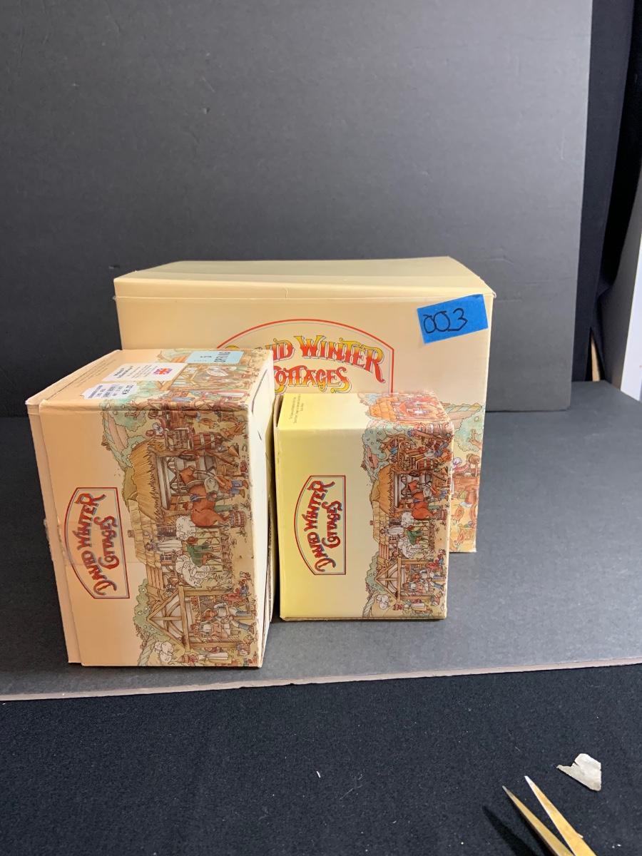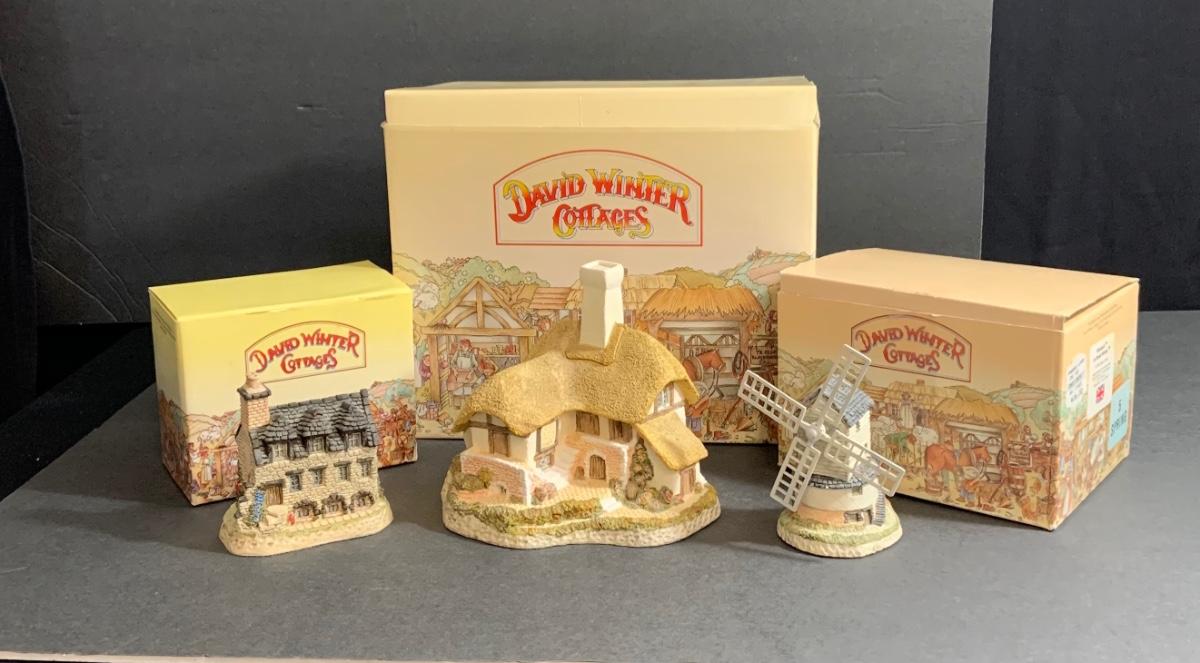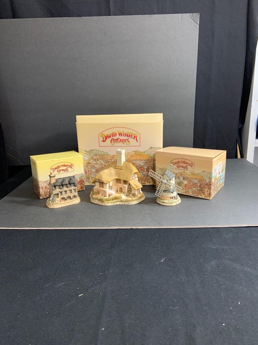 Lot:103: Lot of 3 David Winter Cottage -Black Bess Inn; Burn’s Reading Room; Windmill.
