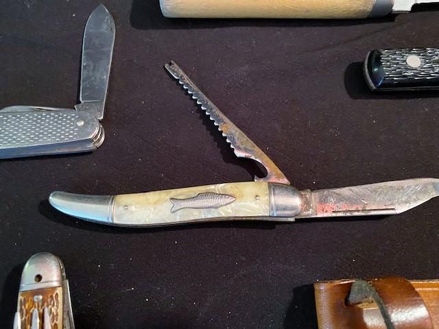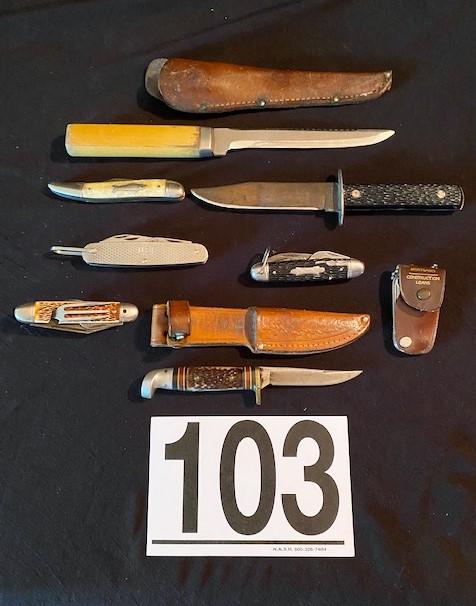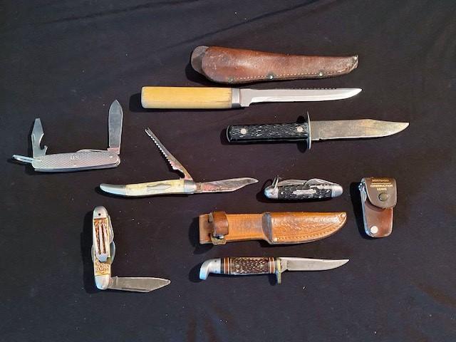 Includes Western, Kamp King, Imperial, Colonial, Camillus, and more. Total of 8 pieces. Largest is 10 1/2" long.